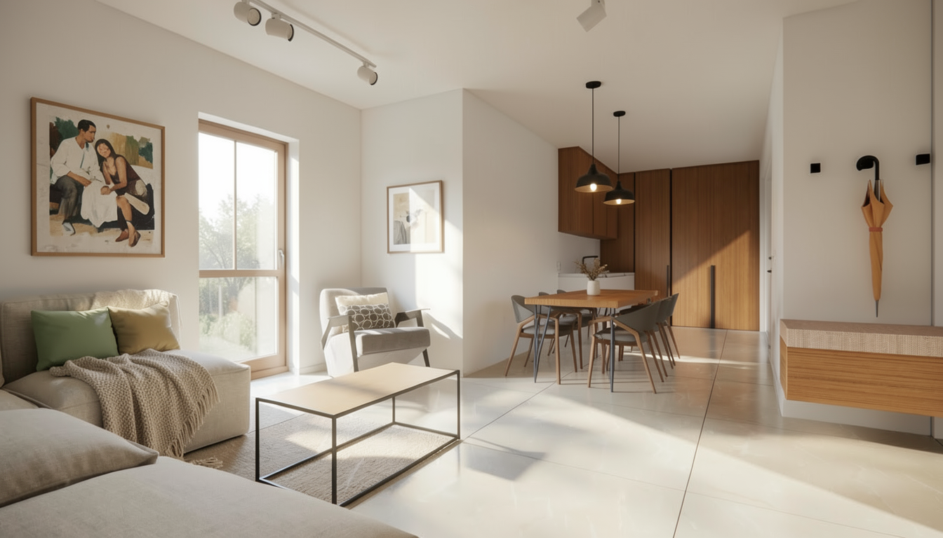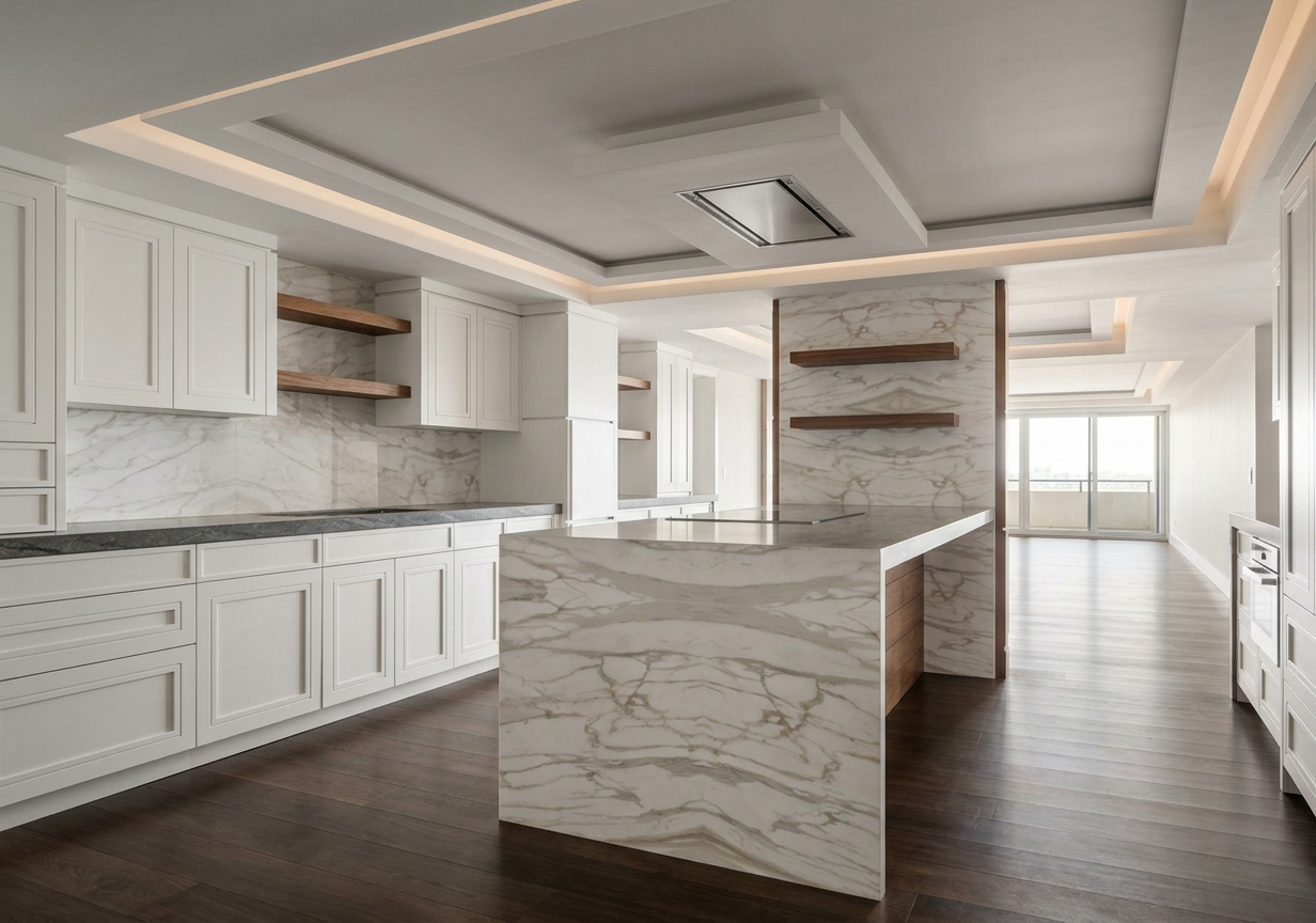 transform the provided elevation into a hyper realistic interior photograph that is indistinguishable from a real professionally shot interior design photograph this must read as a real space captured by a camera not a rendering not a visualization not architectural cg not concept art and not an illustration geometry lock non negotiable preserve the exact original geometry layout proportions ceiling details wall depths panel divisions openings doors cabinetry locations millwork dimensions built ins and circulation paths with zero architectural changes nothing may move scale simplify or be reinterpreted geometry must remain absolutely unchanged camera derivation critical derive the camera position height angle and framing strictly from the uploaded elevation eye level interior photography centered or naturally balanced composition 24 35mm interior lens feel no dramatic angles no stylized framing do not reuse or approximate camera framing from any previous image remove all drawing artifacts completely remove all linework cad edges drafting outlines diagrammatic shapes sketch artifacts nothing may appear outlined flat schematic or illustrative the elevation must be visually reinterpreted as a finished real interior photograph material realism rules wood if present smooth solid plank material extremely subtle restrained grain matte or soft satin finish only no graphic patterns no decorative striping no visual noise wood must absorb light gently never glossy or sharp fabric upholstery if present soft compression subtle seams gentle shadowing natural fabric texture no flat color blocks stone slabs if present light natural veining soft organic variation low contrast no symmetry no bold or busy patterns stone must feel heavy and grounded walls fine surface texture slight tonal variation never flat paint edge construction realism all edges corners joints and transitions must be softly broken and physically realistic no razor sharp corners no cgi perfect edges slight construction tolerances only everything must read as fabricated installed and dimensional lighting photographic behavior lighting must behave like real high end interior photography natural daylight only unless otherwise specified realistic light bounce gentle shadow falloff uneven exposure distribution subtle brightness variation across surfaces avoid studio lighting uniform illumination over clean exposure global illumination look slight softness is preferred over sharpness camera image imperfections very important introduce subtle photographic characteristics gentle lens softness micro exposure variation natural contrast roll off mild atmospheric depth primary plane sharp background slightly softer the image must feel captured not generated absolute constraints no creative interpretation no stylization no exaggeration no added or removed elements any deviation from the original elevation geometry or intent is unacceptable negative prompt always include architectural rendering 3d visualization cgi unreal engine octane vray sketchup look flat textures graphic lines outlined edges over sharpened studio lighting concept art illustration ai look plastic materials glossy wood high contrast grain perfect symmetry do not change ceiling design