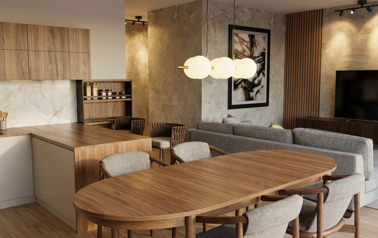 create a realistic rendering from this rendering with the same finishes