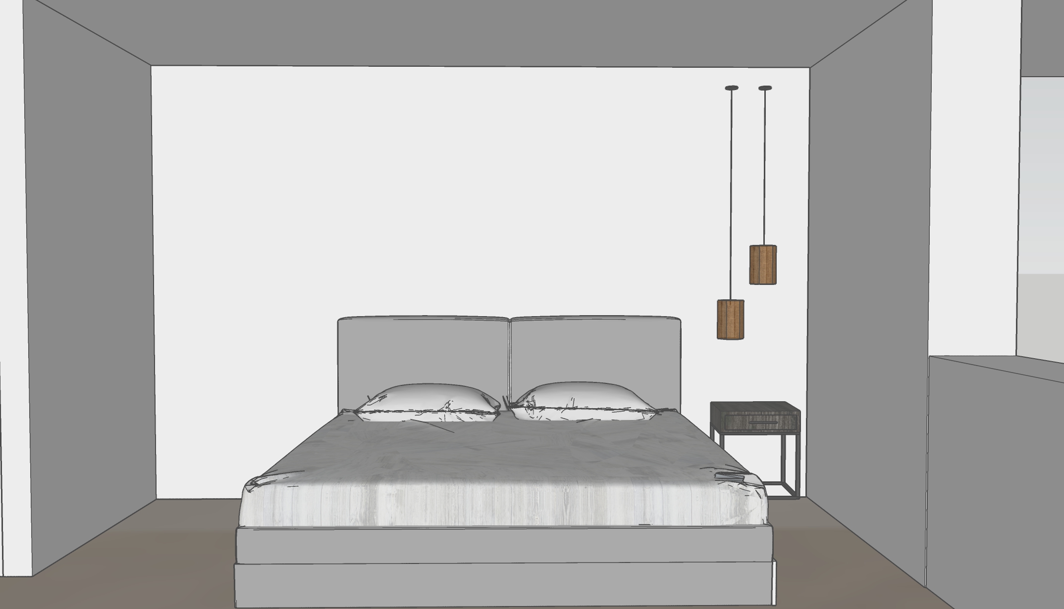 window to the right side wardrobe with mirror to the left please render