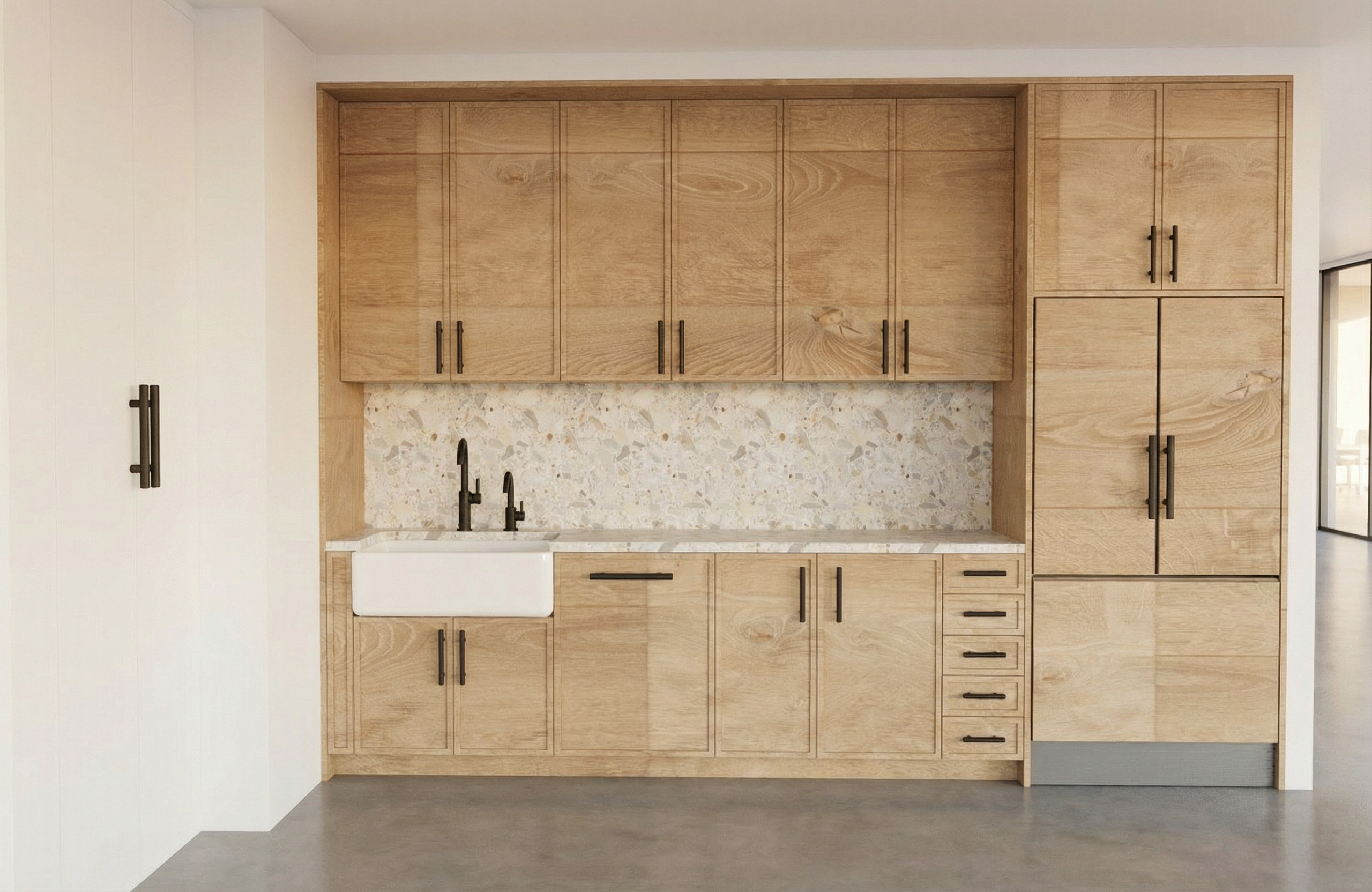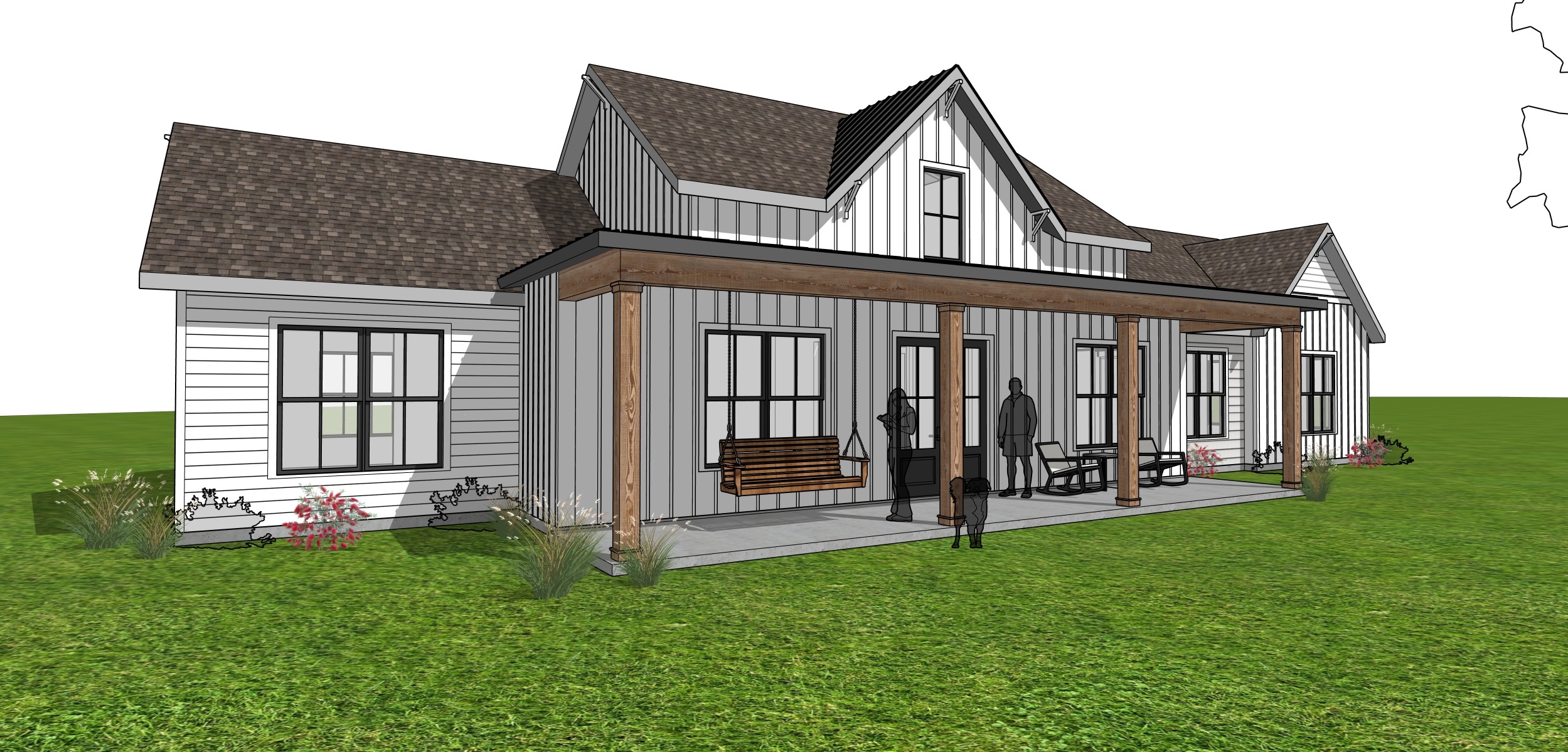 exterior shot make realistic add landscaping and real people