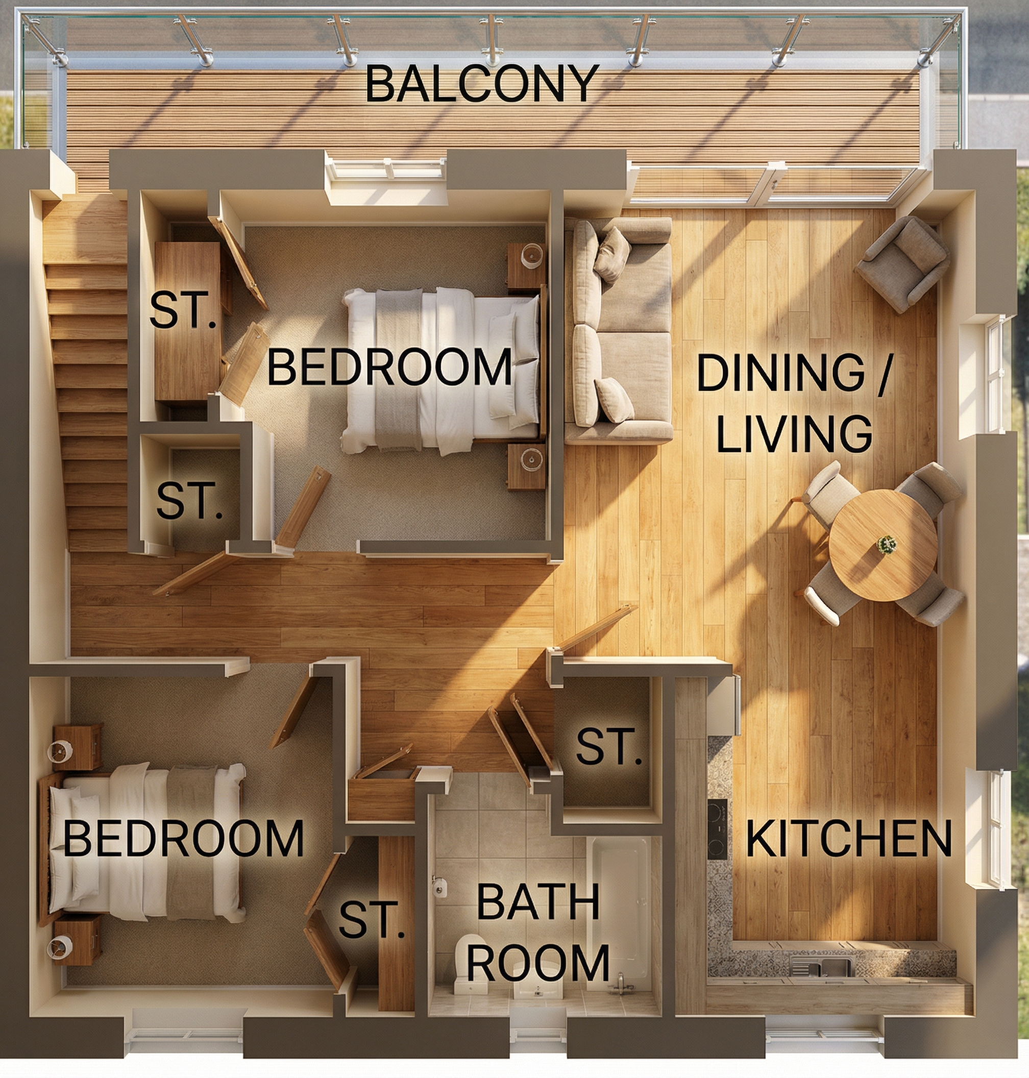 ceiling is white and please make illumination with natural shadows