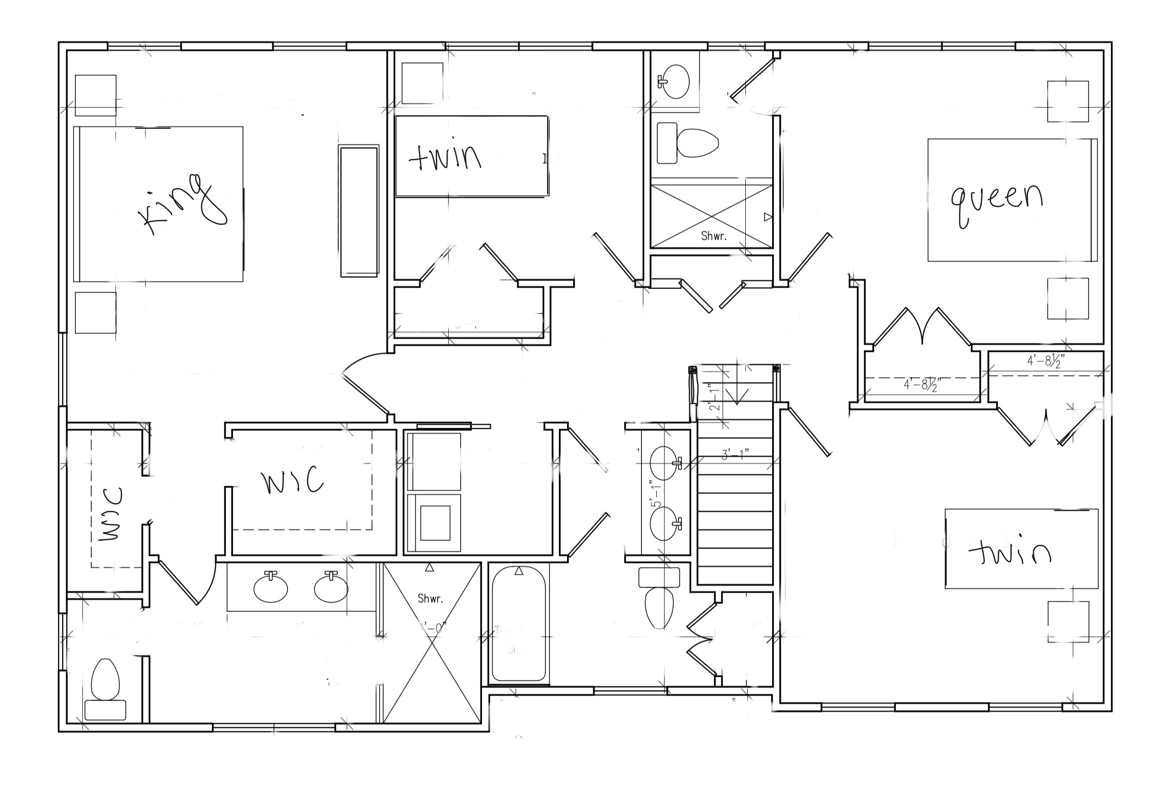 convert this floor plan into a realistic isometric 3d view of a full house show the space from an elevated angle with furniture walls and details visible minimal design white walls wood flooring bed sizes are labeled do not add extra furniture use the same furniture as shows on the plan do not change the orientation of the floorplan