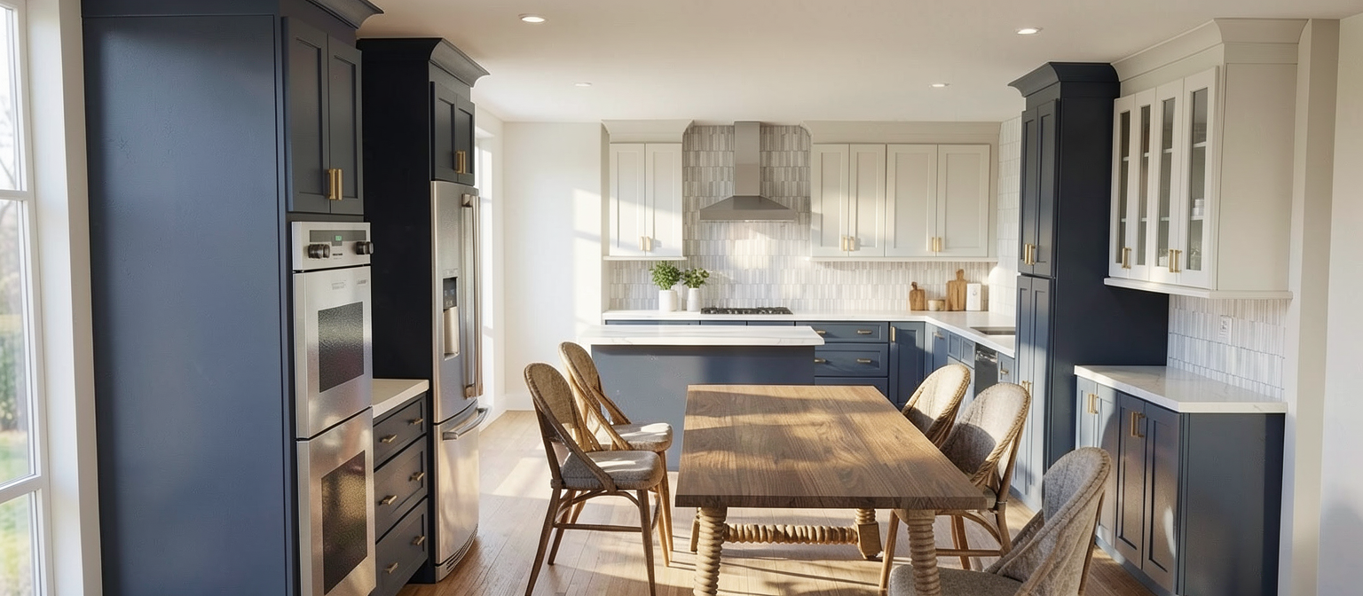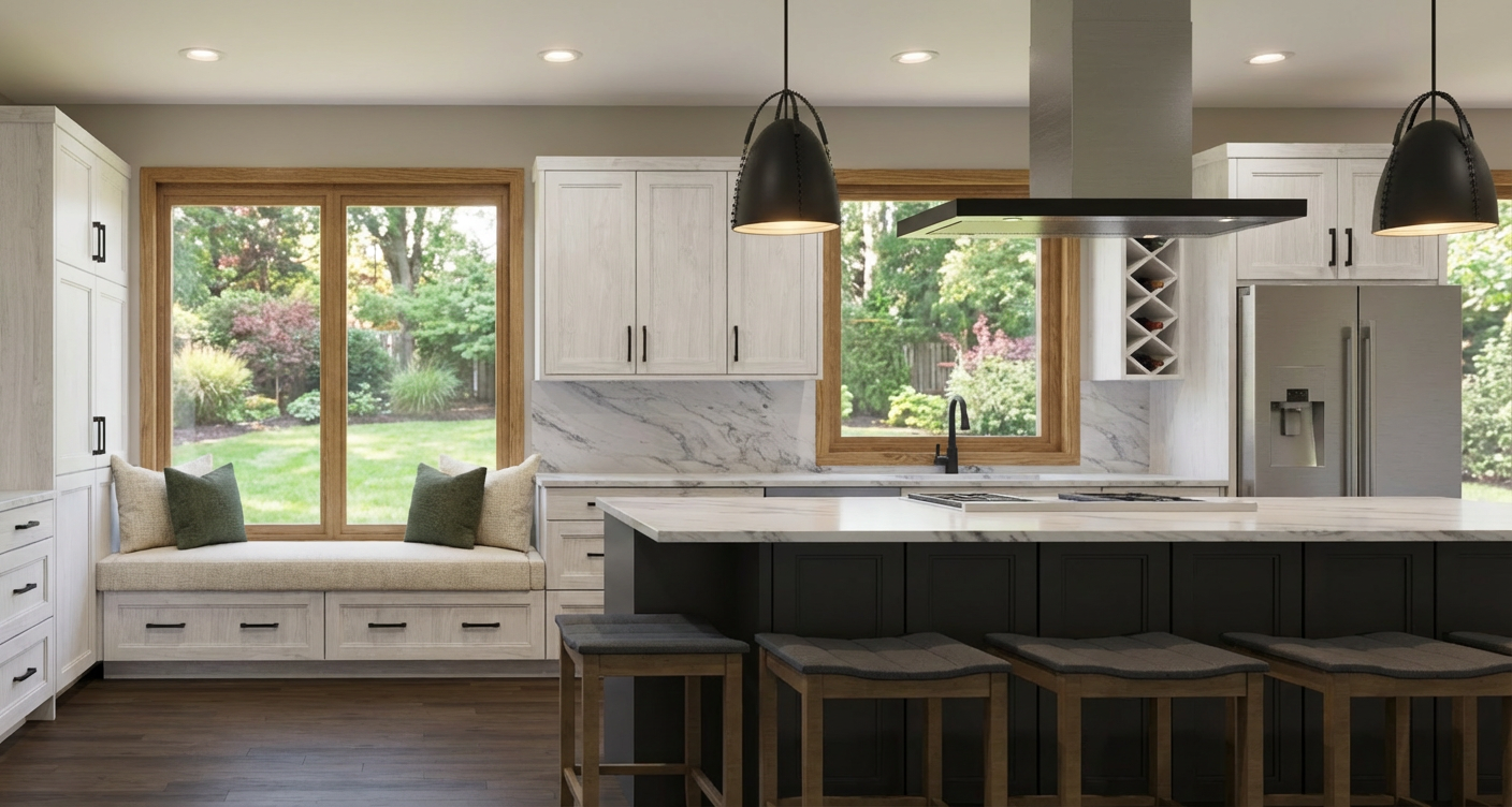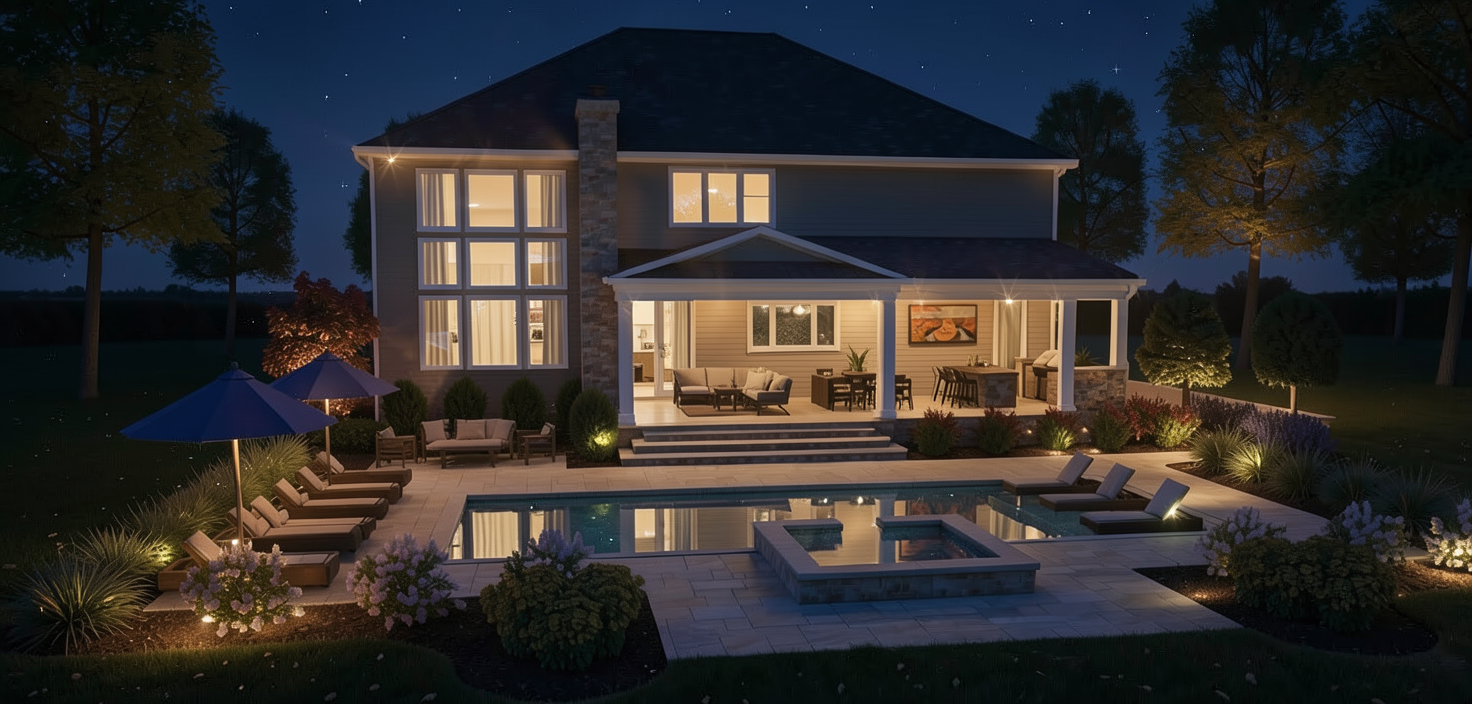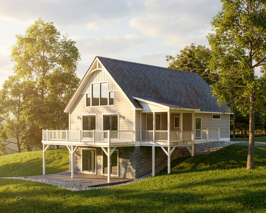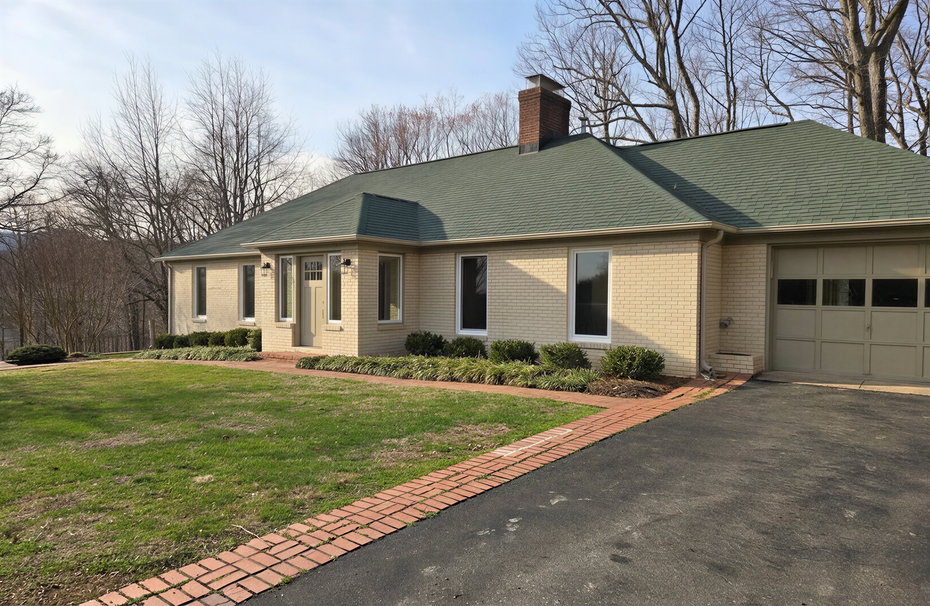 keep the house pictures details as the default and precise no changes change red brick to creamy beige at the chimney change frieze board under soffit more simplify and modern