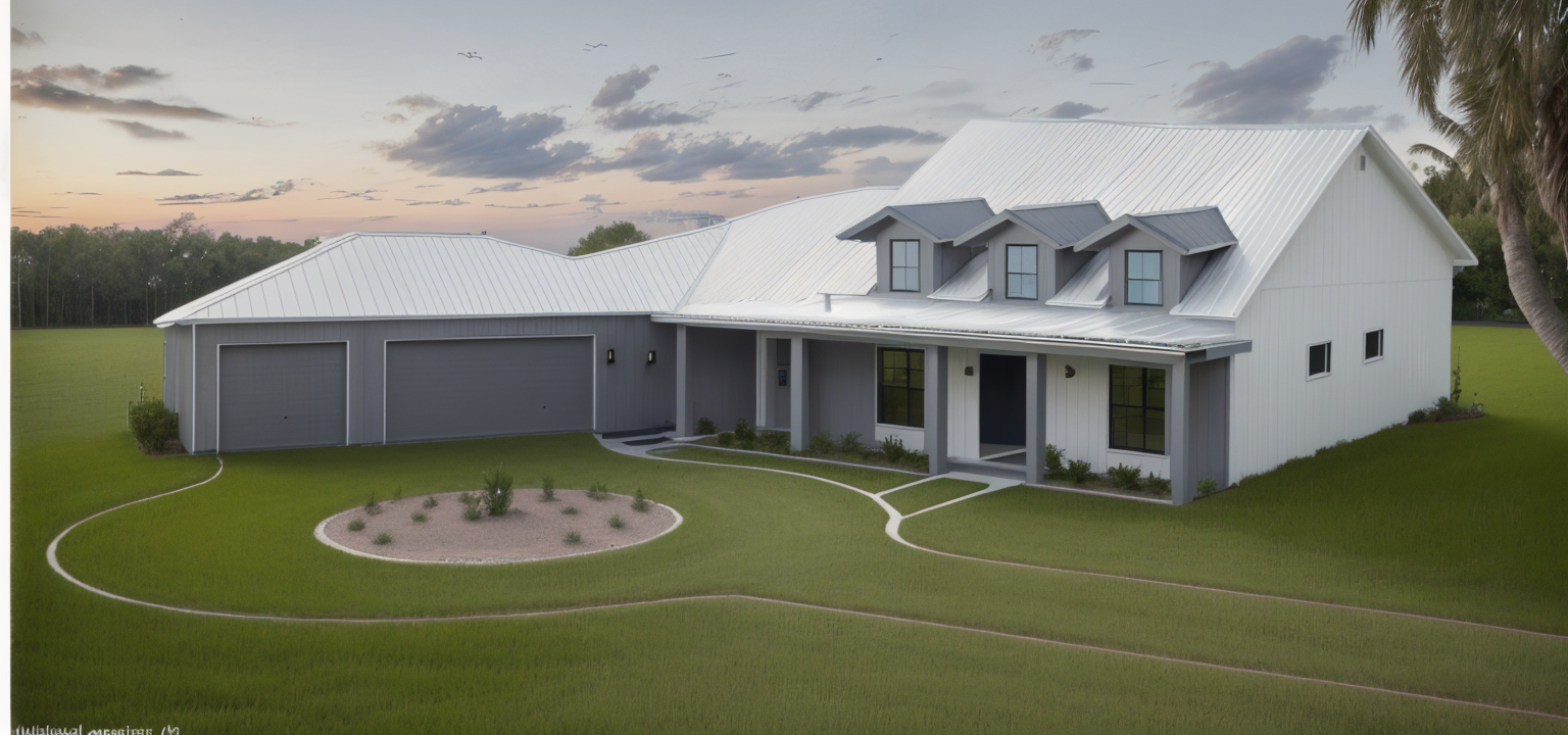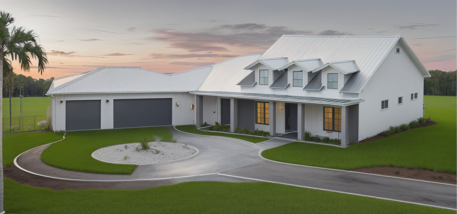 modernist exterior shot a clerestory wall by the dormer design a luxurious coastal residence that blends timeless elegance with tropical charm the home should feature a symmetrical fa ade with a central entrance framed by decorative columns flanked by large windows and accented with dark shutters incorporate a multi dormer roofline to enhance architectural interest and allow natural light into the upper level include a spacious three car garage with dark paneled doors and a brick paved driveway that curves through manicured lawns and vibrant flower beds surround the property with lush greenery tall palm trees and a backdrop of dense forest to evoke a serene upscale atmosphere ideal for warm climates like florida s architecture