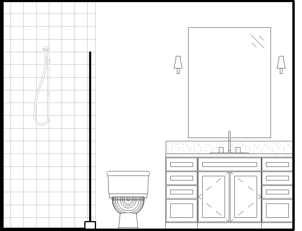 a photorealistic high resolution interior rendering of a modern farmhouse bathroom designed for architectural showcase retain all existing details white shaker cabinetry white window panes light gray quartz countertops light gray ceramic tile flooring emphasize realistic material textures subtle reflections on the countertops soft matte paint finishes on cabinetry light blue gray matte paint walls natural daylight streams through the windows creating balanced illumination with gentle highlights and shadows maintaining focus on the bathrooms clean timeless design and craftsmanship