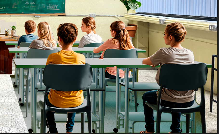 ten year old boys children sitting with their backs turned