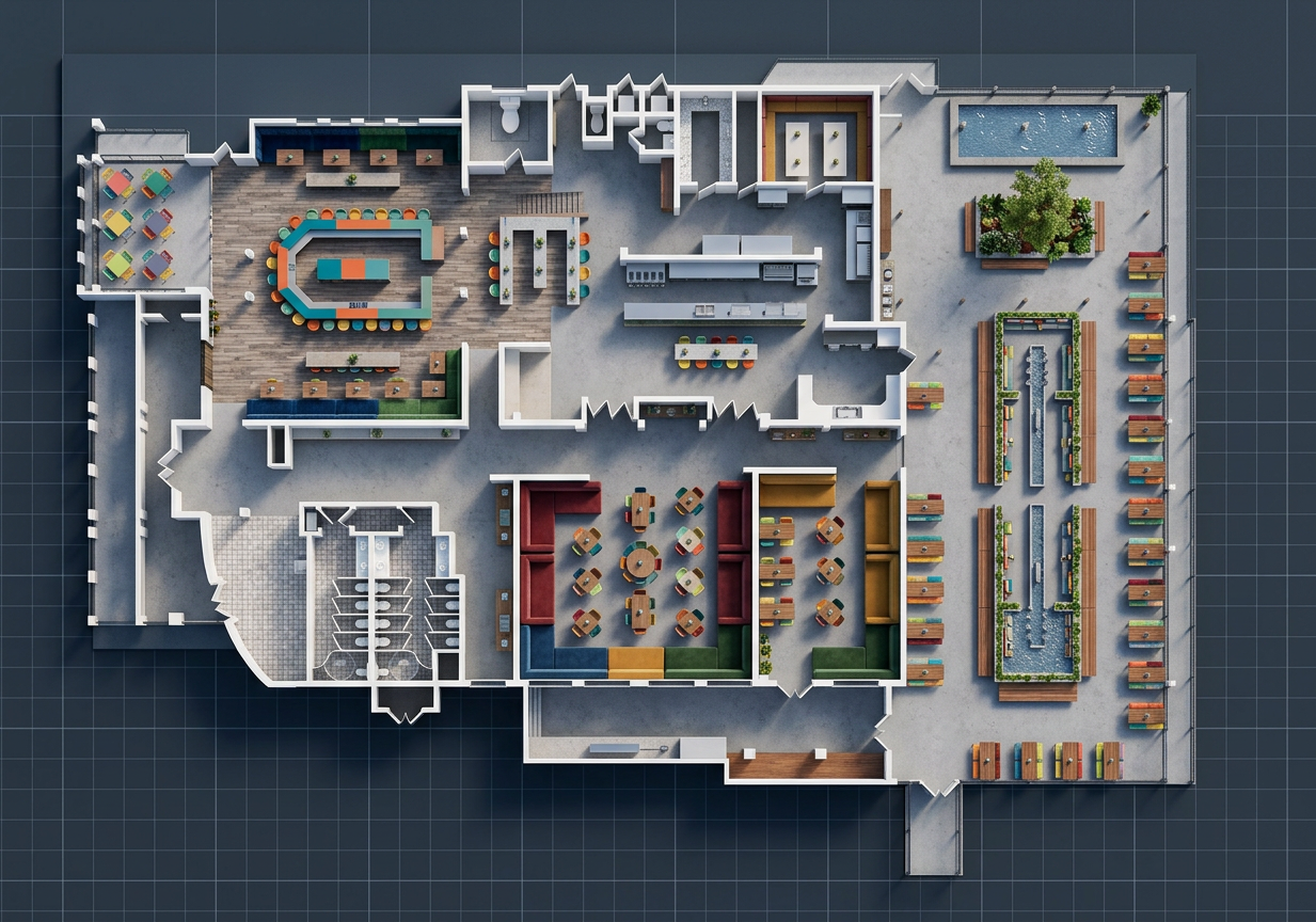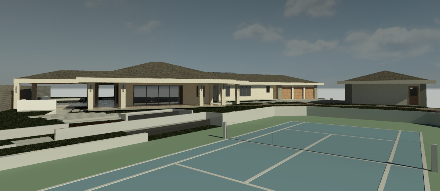 blue and green tennis court surface add architectural landscape and couple trees in the background