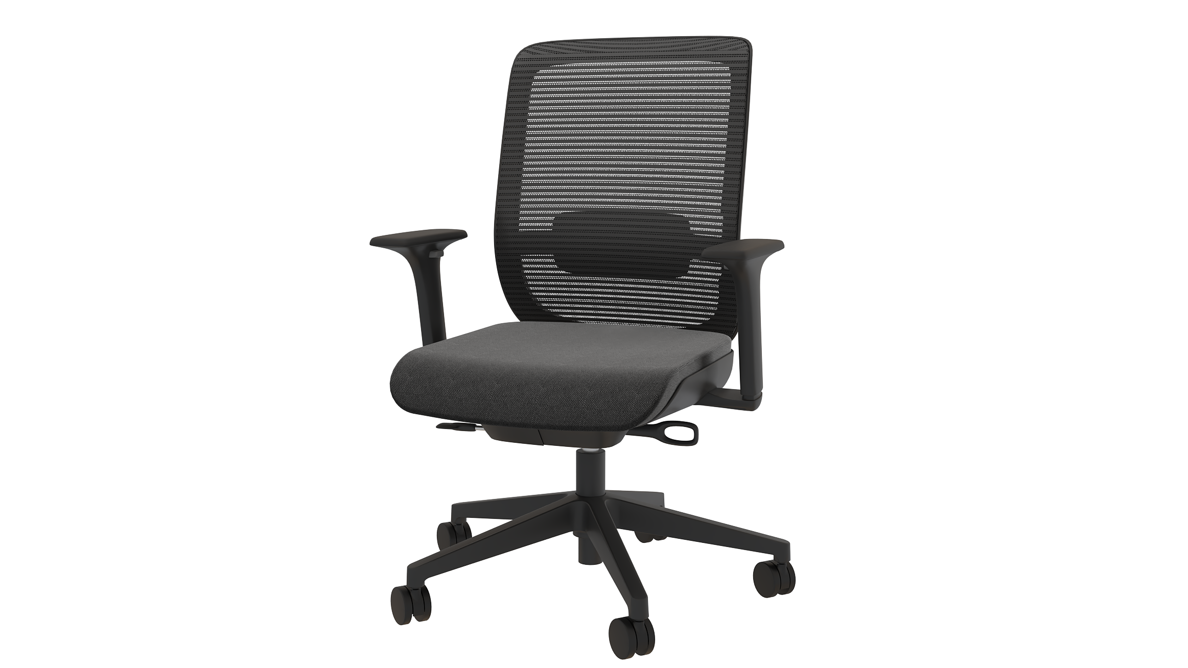 golden california sunset gradient cover photography full black mesh high back office chair with horizontal rib texture backrest and charcoal seat scene open air desert modern terrace at golden hour background sky dramatic sunset gradient deep cobalt blue at top transitioning through violet purple hot coral orange to golden amber at horizon scattered wispy clouds catching pink and gold tones terrace floor warm honey toned travertine stone slabs left single tall saguaro cactus silhouette against sunset sky right desert sage and ornamental grass swaying chair silhouette all black chair in heroic silhouette against blazing sunset gradient warm amber rim light outlining entire chair profile top of backrest edge glowing amber gold armrest top surfaces catching copper highlight horizontal mesh ribs individually rim lit in warm gold base spokes reflecting warm stone below lighting dramatic golden hour backlight warm fill long shadow stretching forward on travertine lens flare from setting sun behind chair warm color wash on all surfaces color palette cobalt sky violet coral amber gold black chair silhouette warm travertine style apple product campaign meets architectural photography california modern luxury cinematic sunset power 8k anamorphic golden hour perfection ar 2 3 style raw stylize 250 q 2