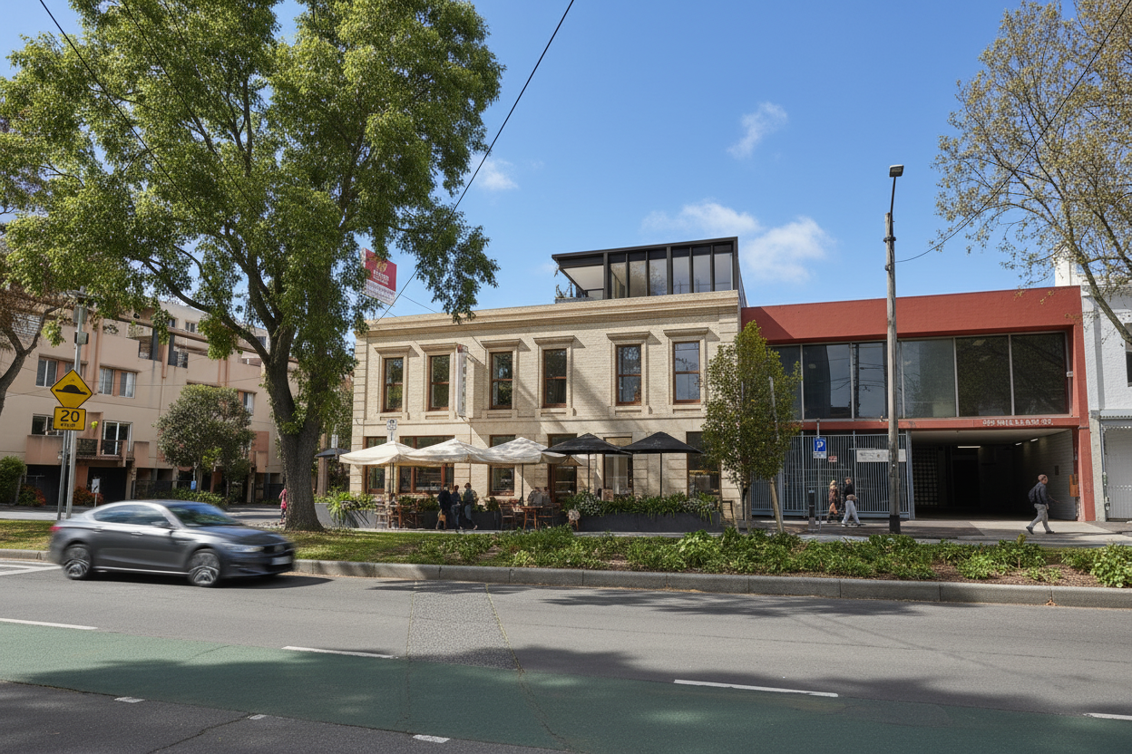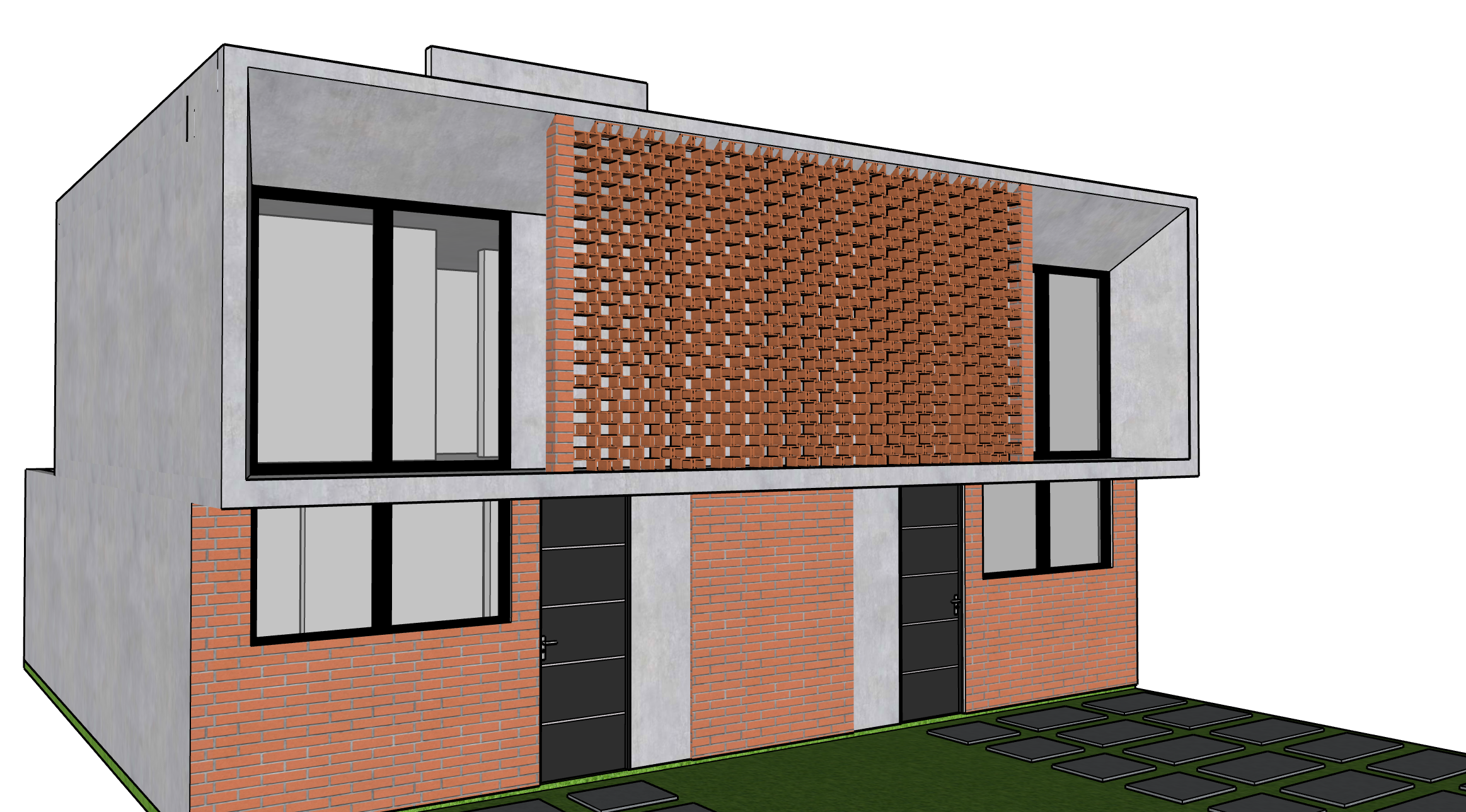 modern concrete house with a fa ade featuring orange brick walls and a perforated brick screen windows are reflective with sleek black aluminum frames the house is surrounded by modest lower middle class residential buildings bright daylight realistic lighting and shadows high detail textures architectural visualization style