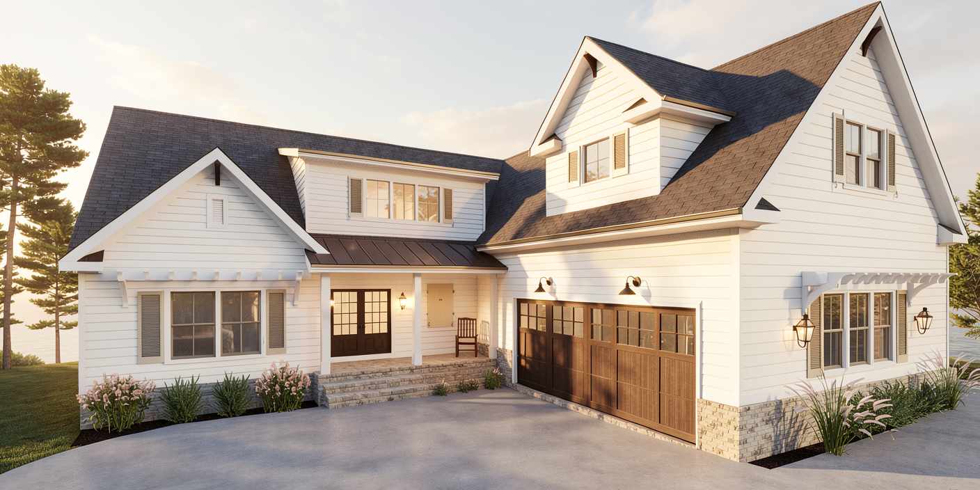 render a modern architectural scene featuring a contemporary building with clean angular lines and a minimalist design the facade is a bright crisp white with subtle shadows to enhance depth the balconies and window frames are a sleek matte black contrasting boldly against the building s light exterior the street and pavement are a smooth neutral gray complementing the urban setting the sky is a clear vibrant blue evoking a calm sunny day the overall atmosphere is serene and harmonious capturing the beauty of modern urban architecture
