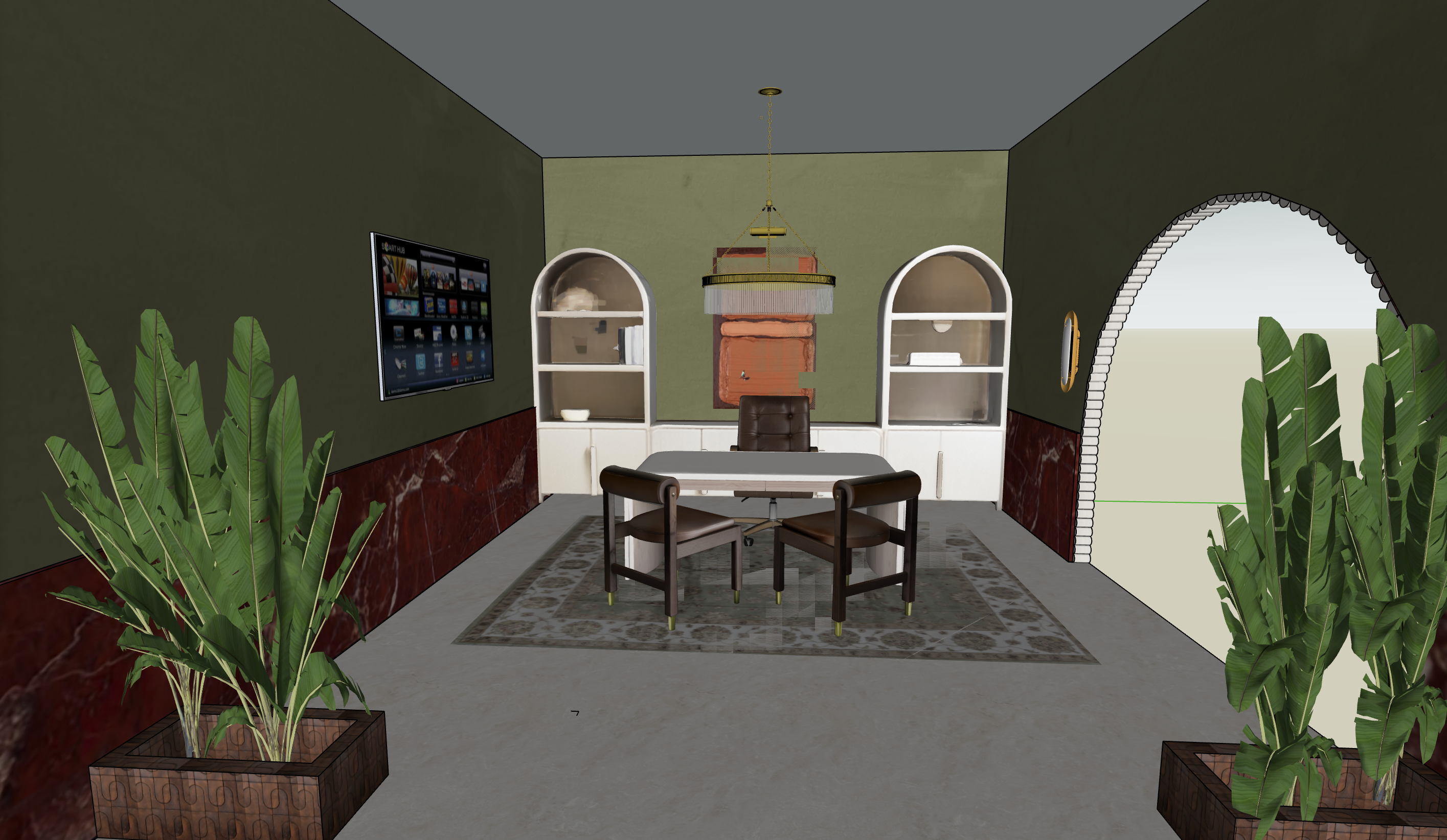 lighting has a soft glow through the arch is white walls of a museum
