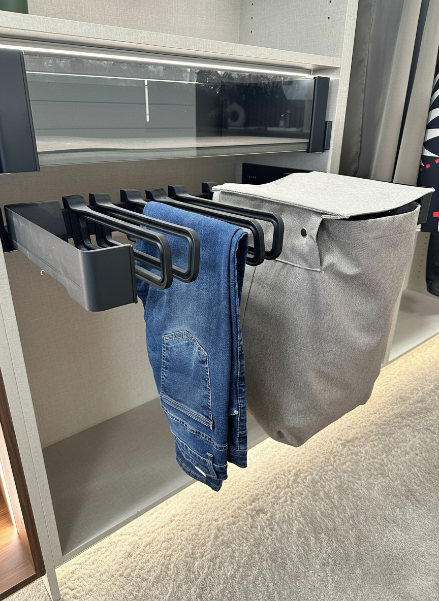 add natural light add folded clothes on the top shelf put watches laying flat on the gray rollout change the carpet to white luxurious