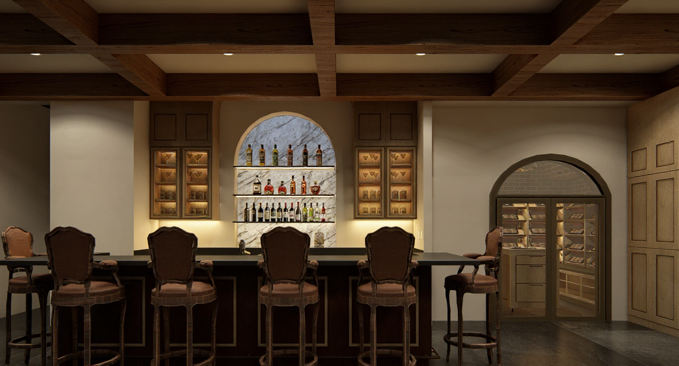 mid sunny afternoon modern boxy homes on both sides large yacht on the water