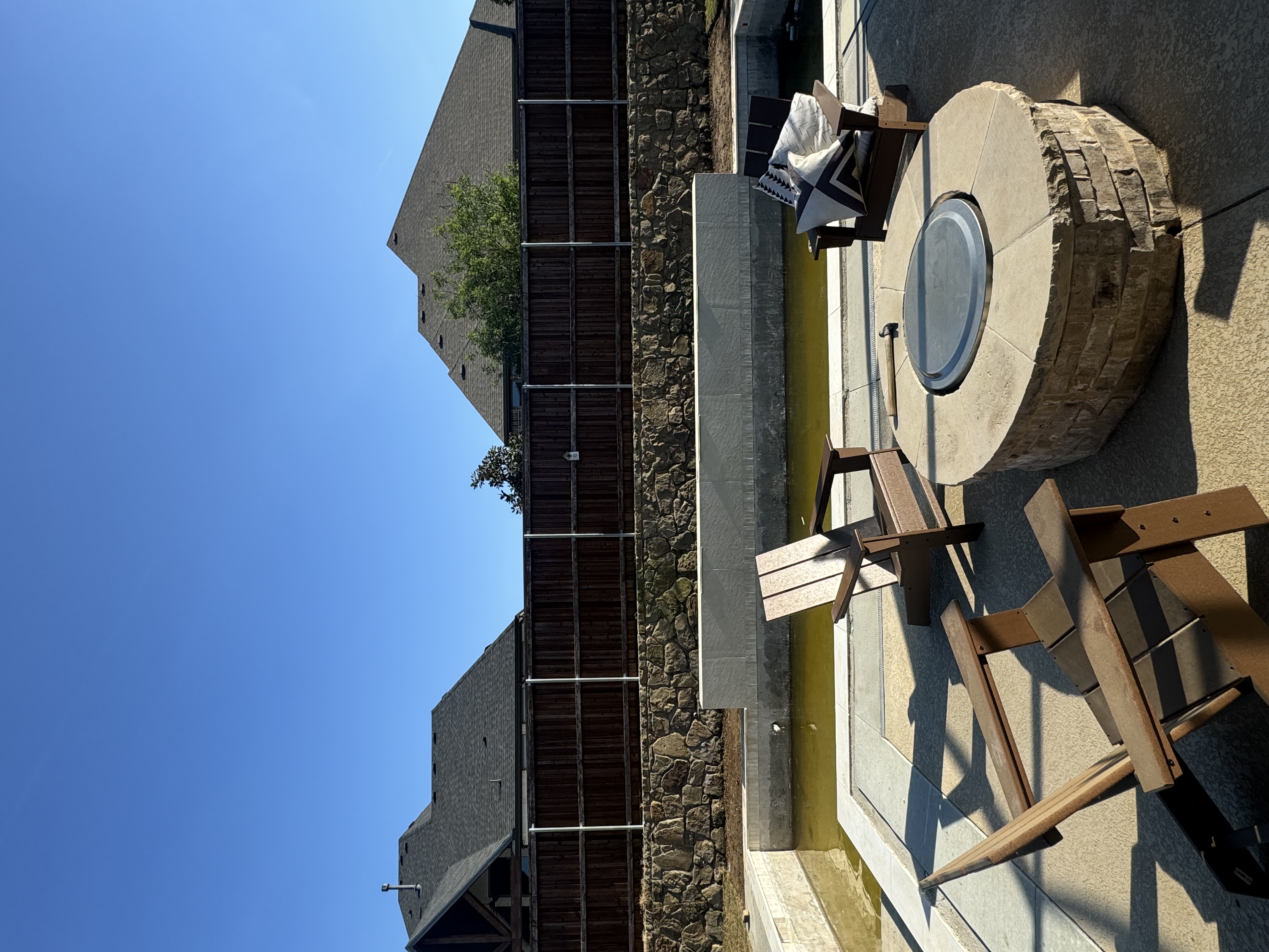 add landscaping behind the cream wall but in front of the fence so i can see what it looks like by my pool please use at least 4 italian cypress tressa behind the cream wall