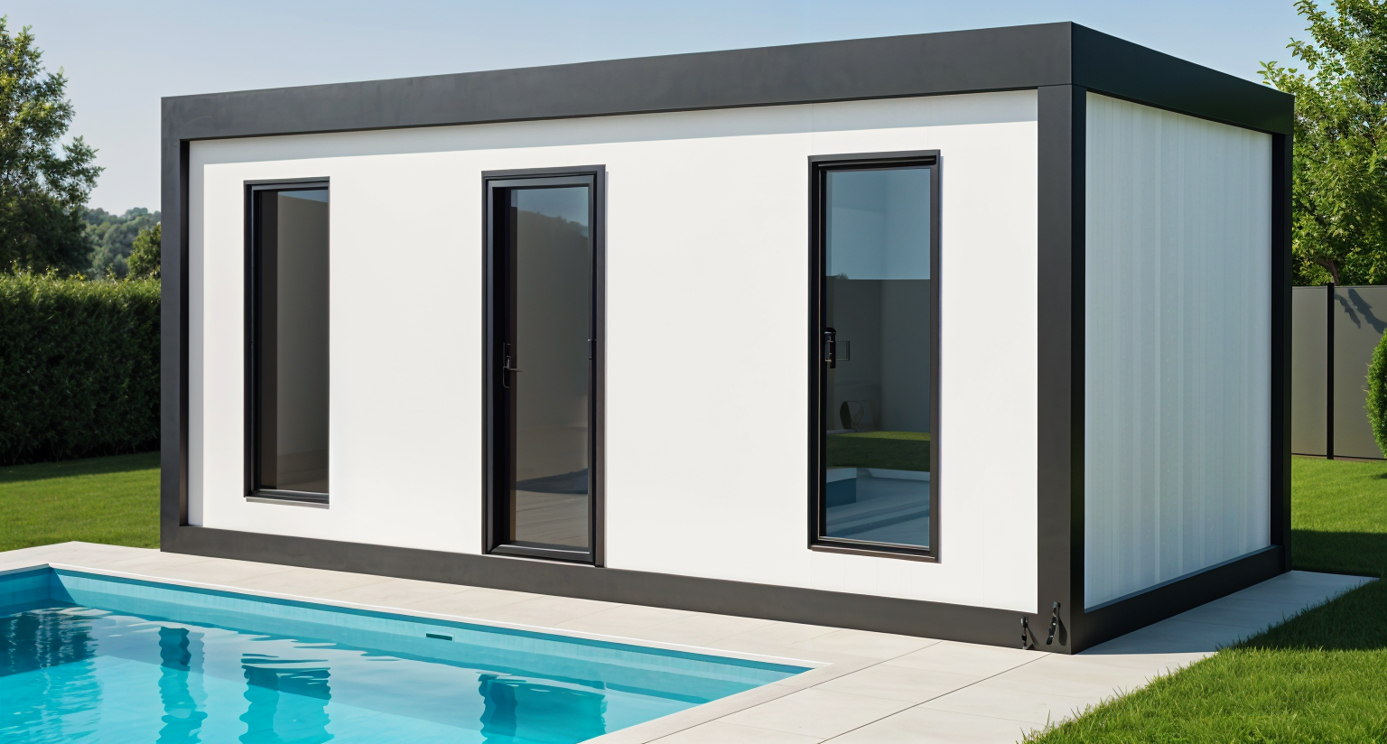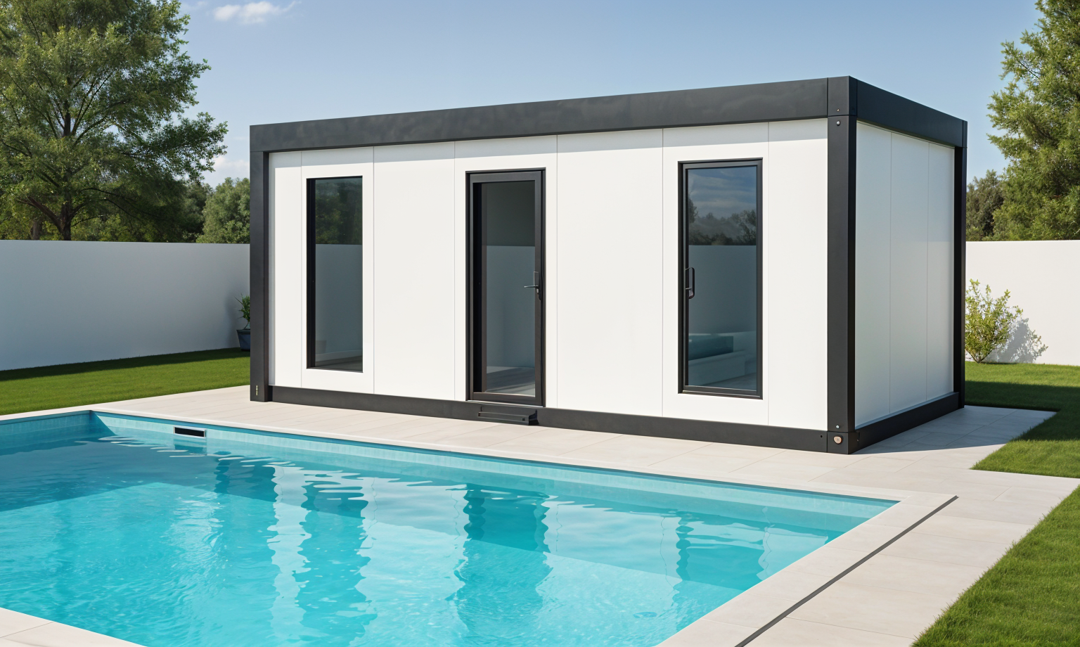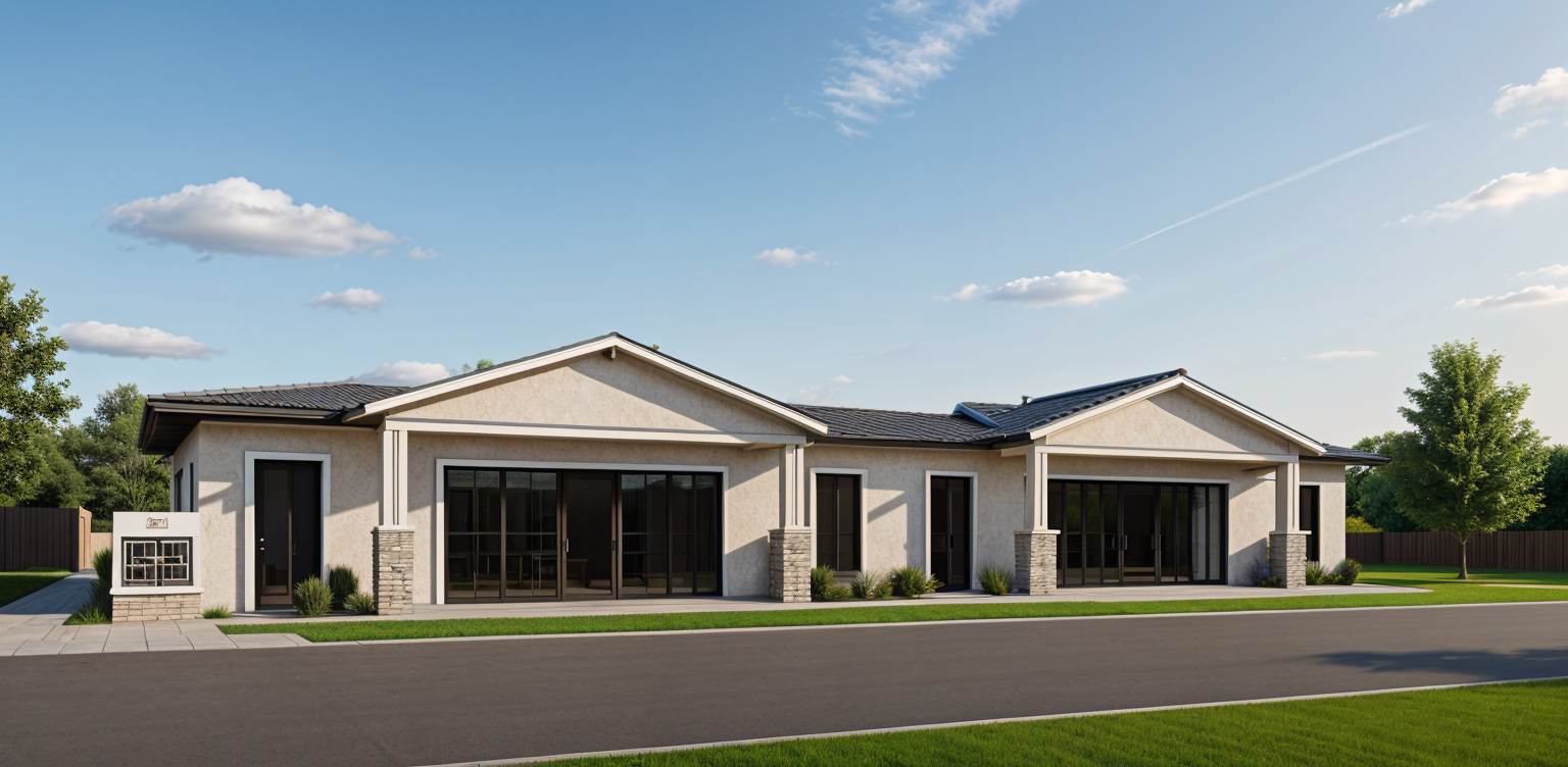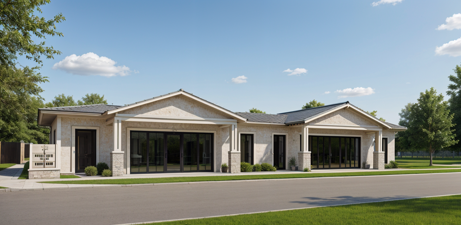 exterior shot stylized modern building with geometric shapes and arches rendered in a minimalist style the building features a pristine white facade complemented by soft shadows the sky is a serene gradient of pastel blue and pink creating a calm evening atmosphere the ground is a sleek concrete gray adding a touch of urban sophistication the overall ambiance is tranquil and contemporary highlighting architectural elegance