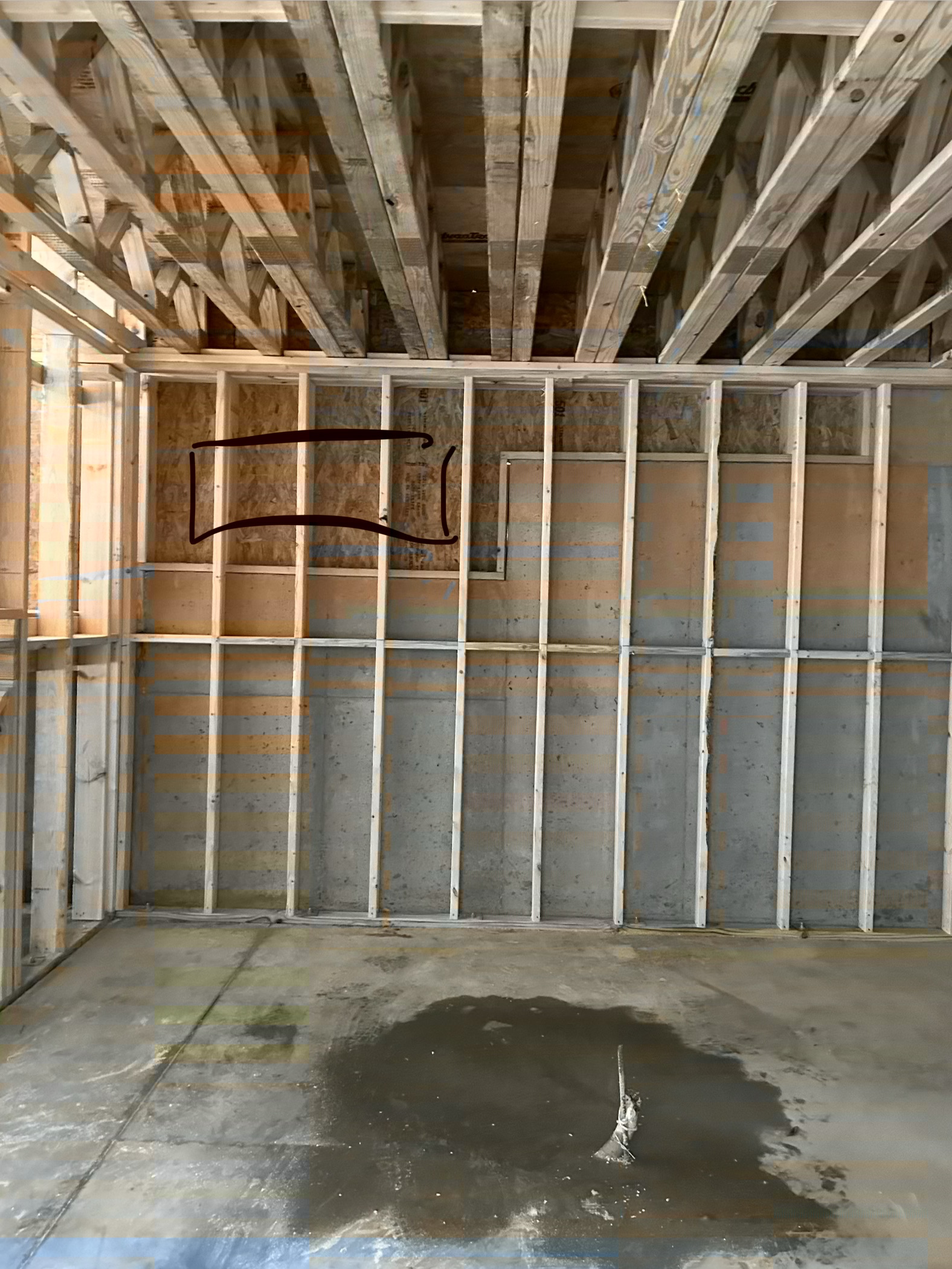 make this an executive home office with dark gray built ins on the back wall transom window where the black outline is dark gray walls an stained wood desk in front of built ins