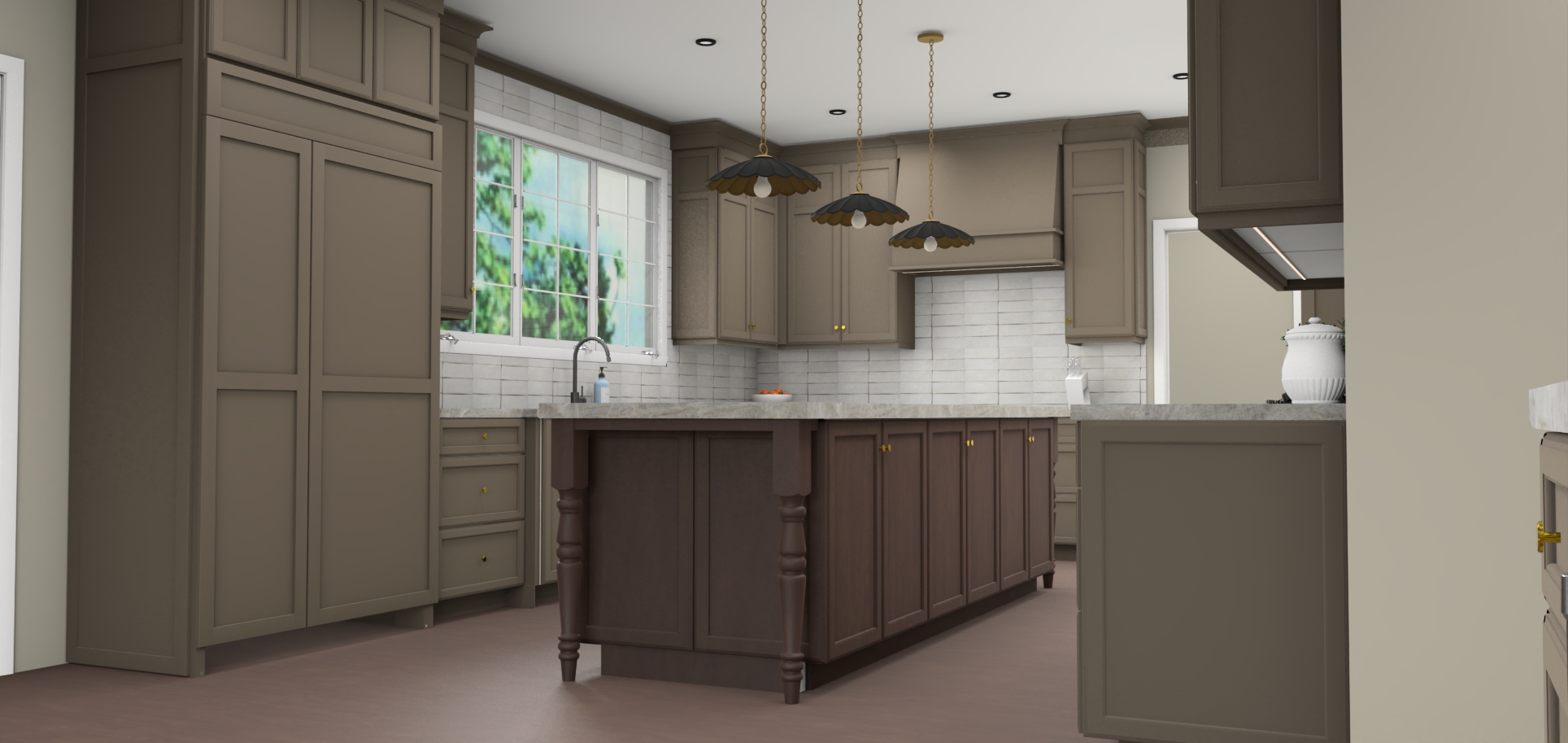 enhance lighting make perimeter cabinets a light taupe color make island cabinets walnut stain