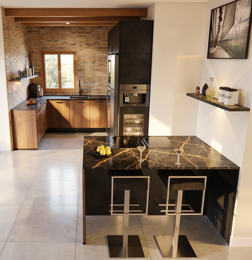 create the interior of a diy workshop along the walls there should be built in storage units and tool boards in the center place work tables with seating additionally in a recess of the room include a small utility area with a work sink one of the tables should resemble a ping pong table the space should feel pleasant there is no window add door where is a hole