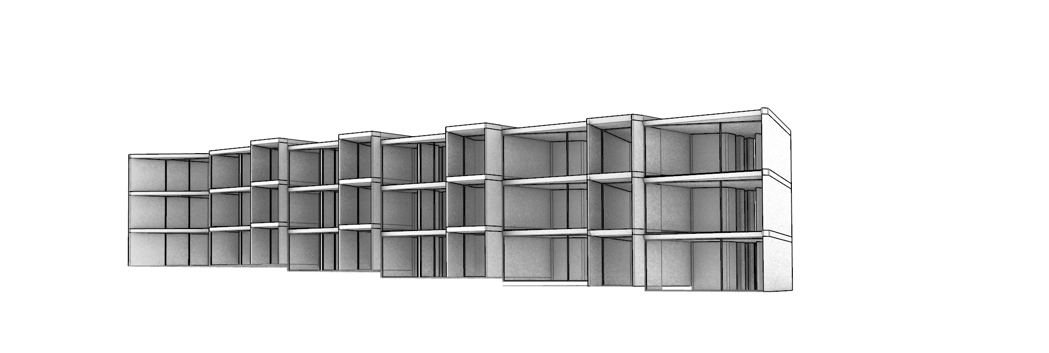 exterior shot residential terraced houses fabricated using 3dcp technology nice atmosphere sun set lots of greenery realistic photo