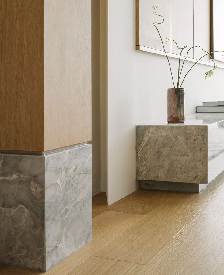 this is a stone base detail and reveal flushed with the wall above make the stone a calacatta gold and make the wall finish mirror