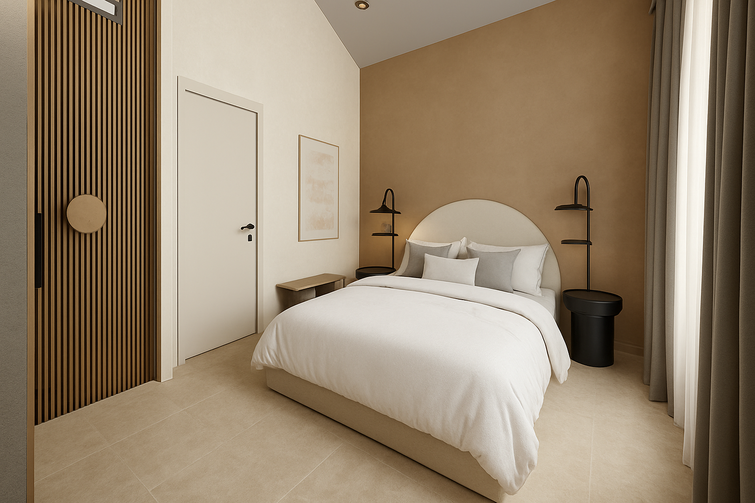 the villa is surrounded by a lot of trees bushes and flowers in the garden the time of day is the golden hour the facades are lit by the sun