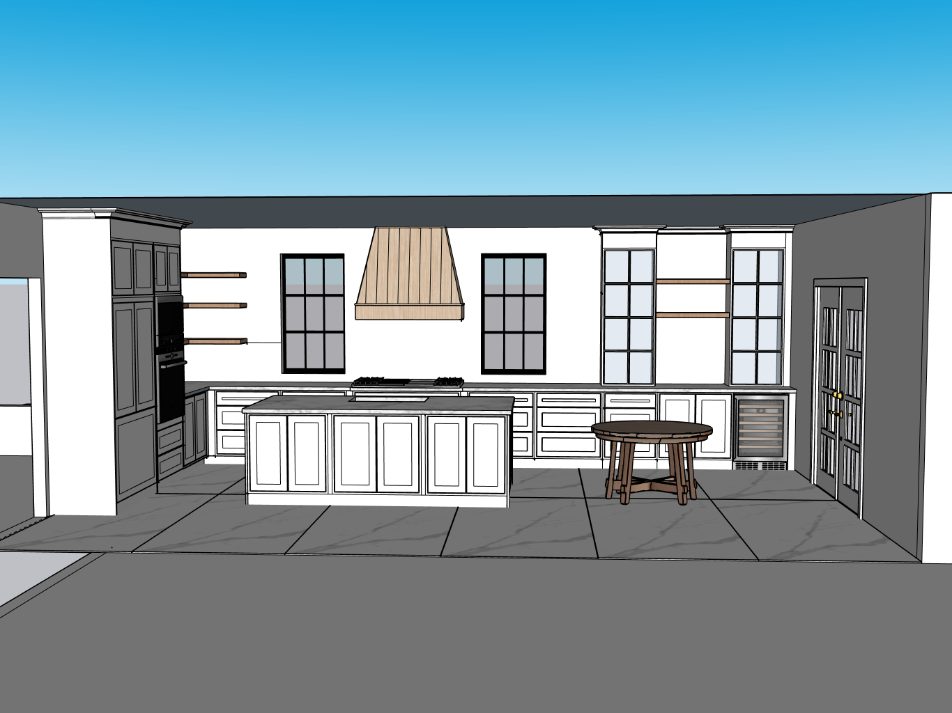render kitchen white oak wood cabinets