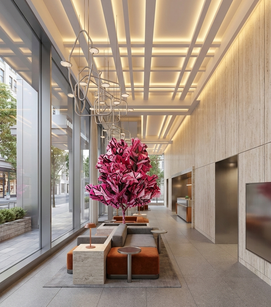 make the floors look like salt pepper polished granite and try to be more abstract sculpture