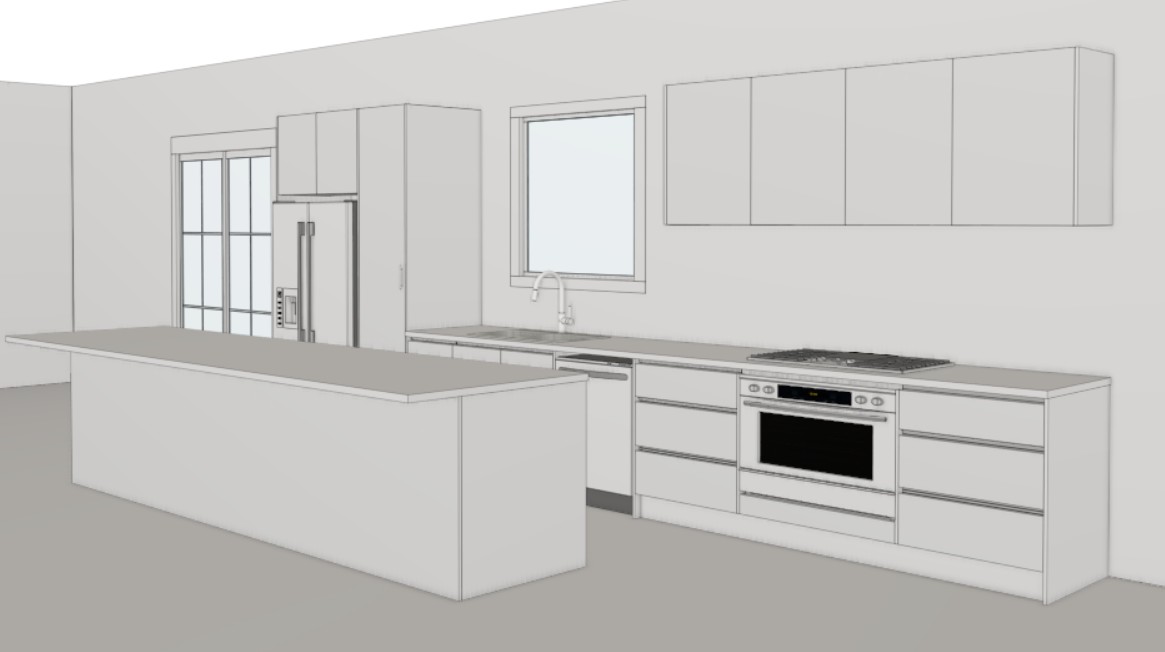 modern interior shot create a modern look kitchen colour scheme using charcoal on the island bench timber overheads and white cabinetry add decor and stools to back of island add timber look floors and light coming through the windows architecture