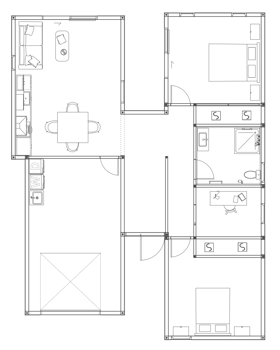 convert this floor plan into a realistic isometric 3d view of a full house show the space from an elevated angle with furniture walls and details visible keep the layout exactly the same just change the colours remove the tree use the same furniture as shows on the plan do not change the orientation of the floorplan