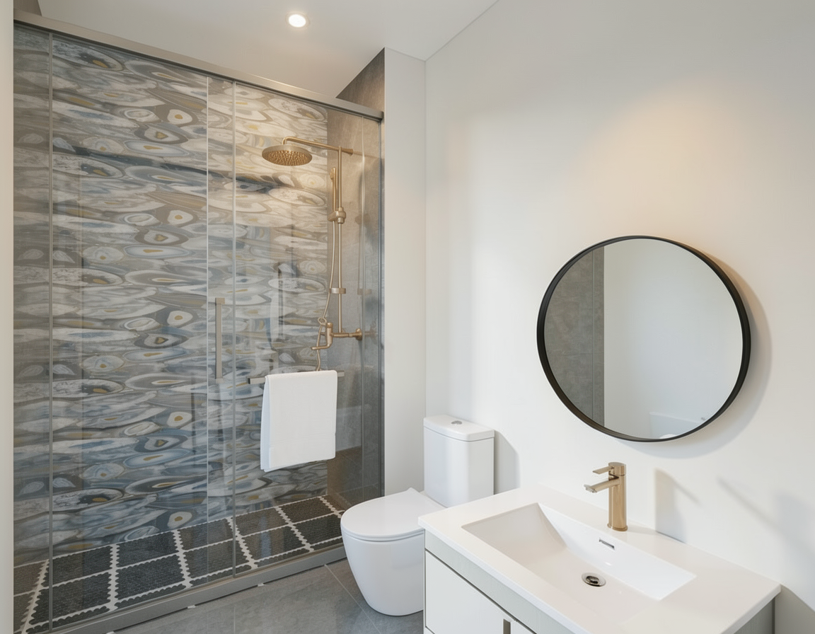 modernist interior shot remove towel and make the countertop white keep everything else the same architecture