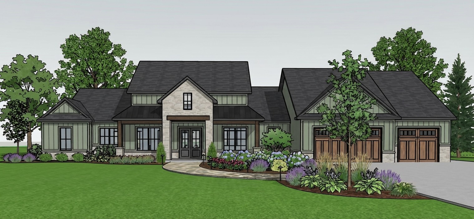 make into a photo realistic image with sage green batt and board and grey brick