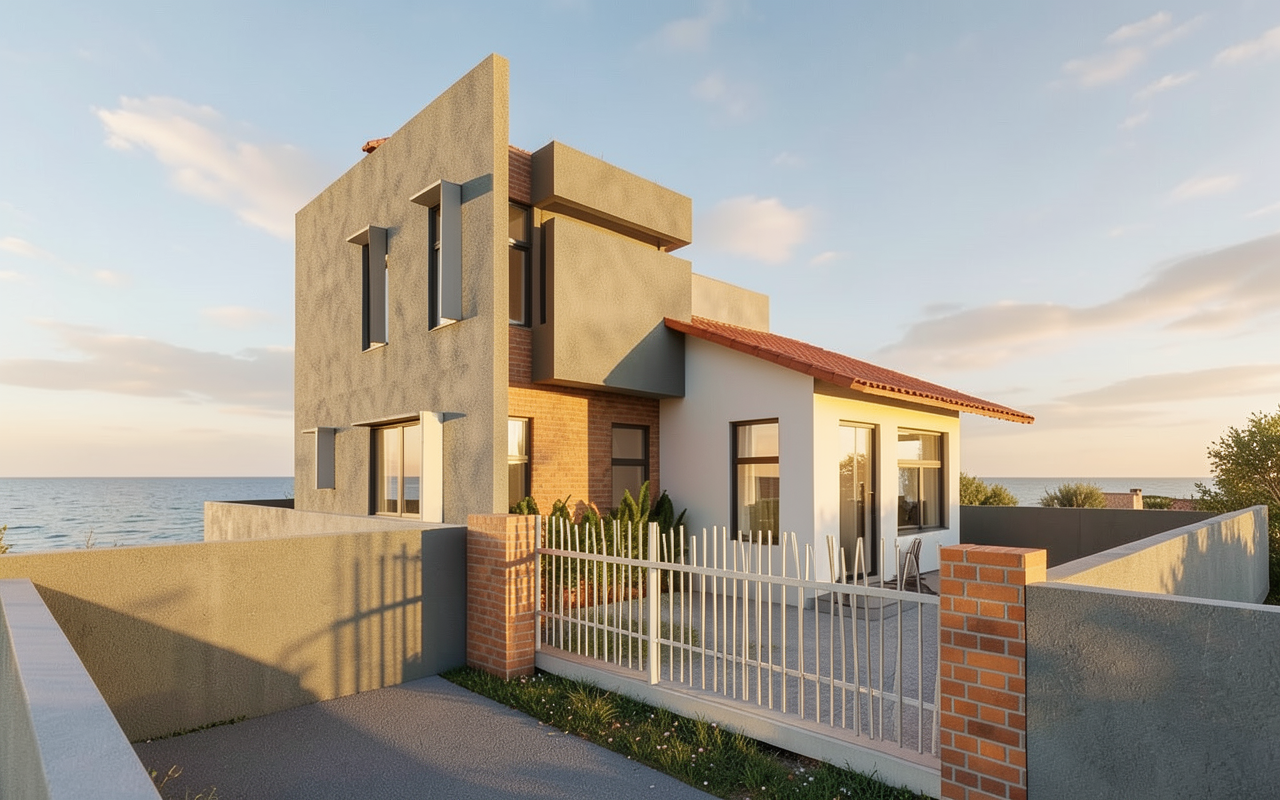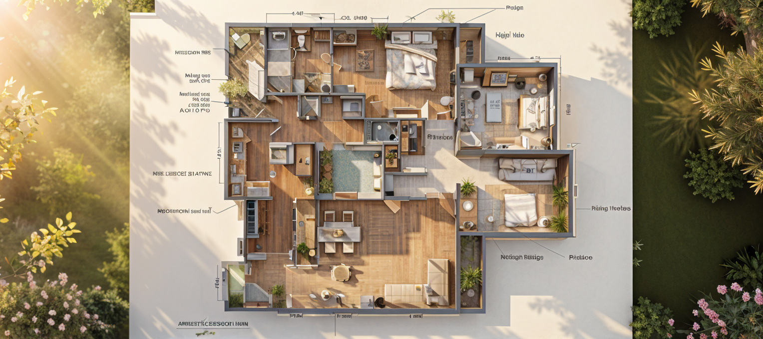render a modern and minimalist interior space featuring a compact kitchen and dining area use neutral tones with light beige cabinets and walls complemented by black accents on chairs and fixtures the wooden floor should have a natural light oak color enhancing the warmth of the space include a light gray sofa to add a cozy touch create a minimalist atmosphere with soft natural lighting to emphasize clarity and simplicity ensuring a harmonious and stylish environment do not change any details and keep th original geometry
