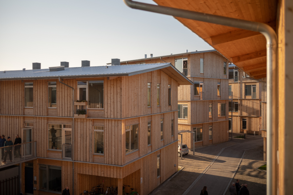 exterior shot modernist exterior shot on a steep wooded hill tall trees surrounding house shou sugi ban architecture