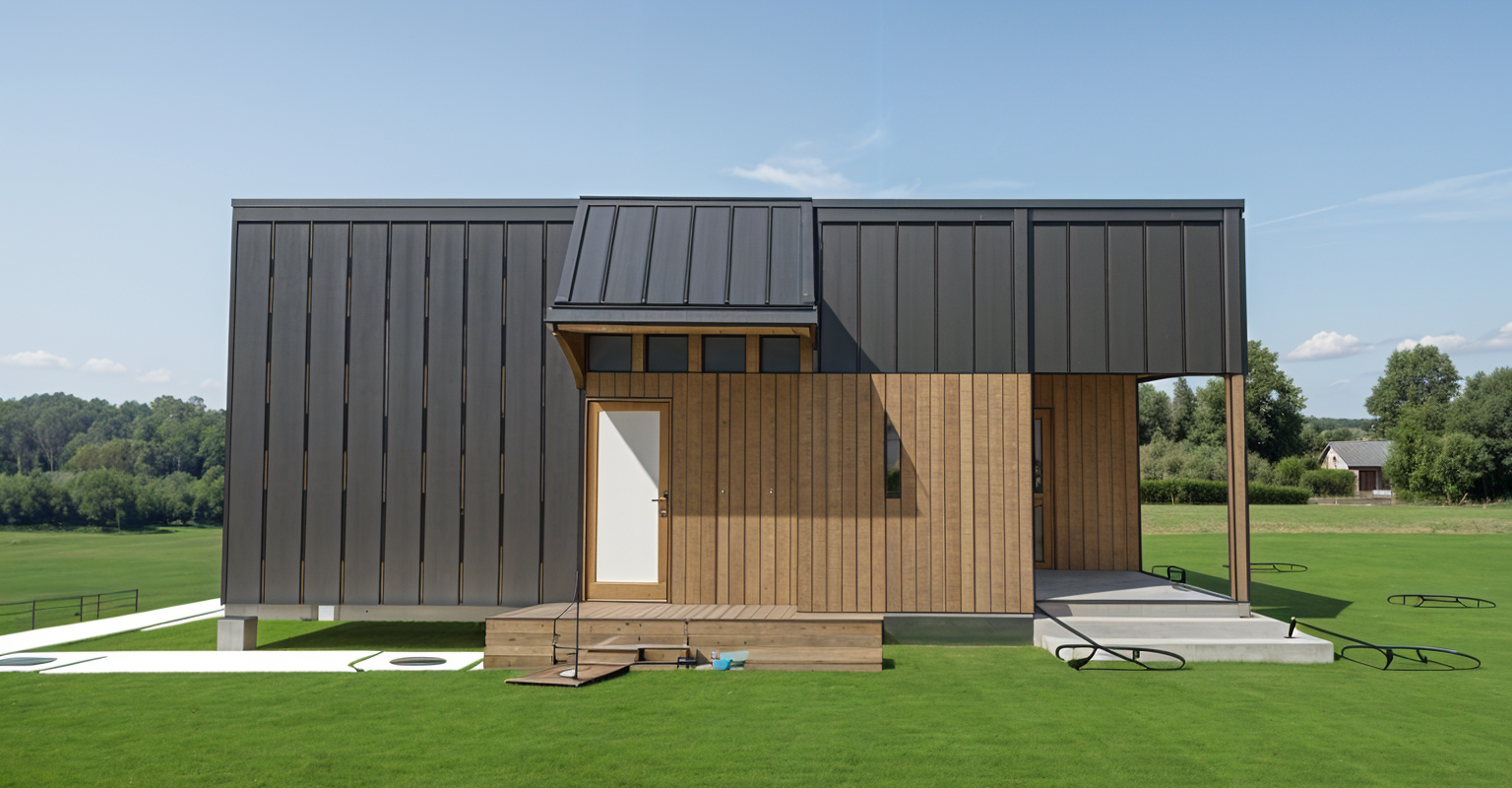 make as photorealistic as possible while keeping textures the same as selection professional landscaping in a lightly wooded scene with good lighting use white siding with black windows and black trim accent the inlays in the garage door in black