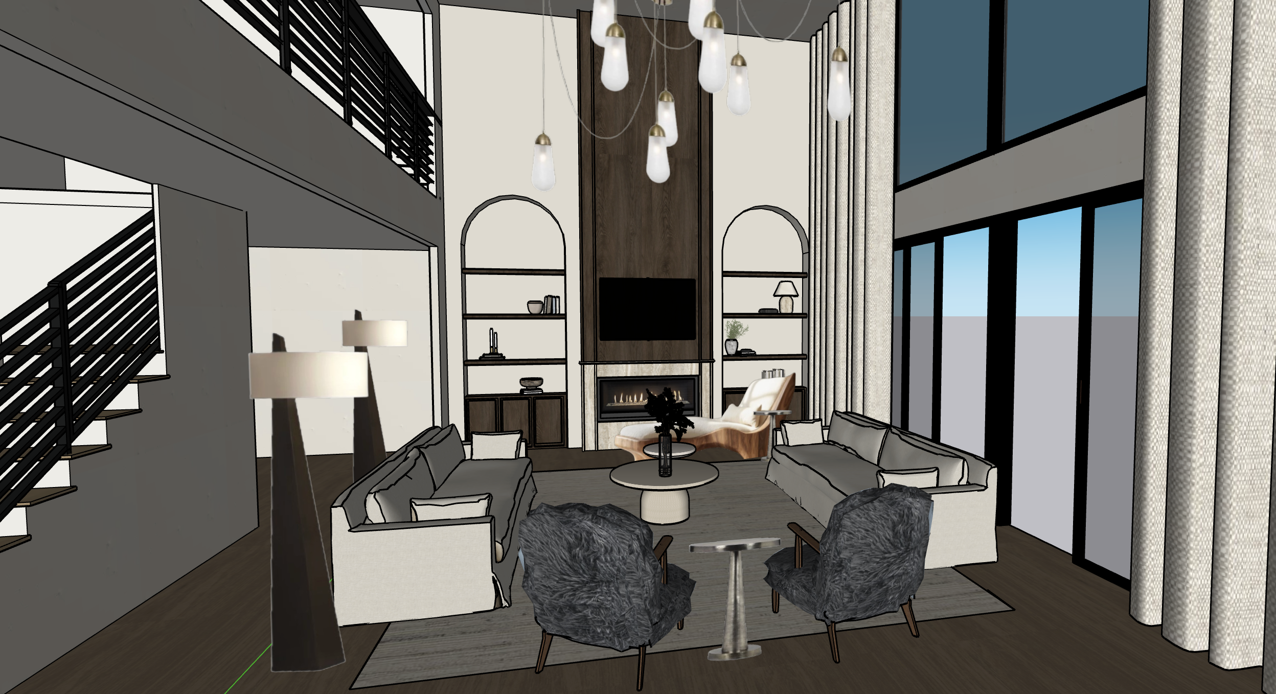 his is a rendering from sketchup i d just like it to feel slightly more realistic in lighting and material depth please don t change any of the design elements or content i still want it to clearly read as a rendering just with a bit more realism and refinement