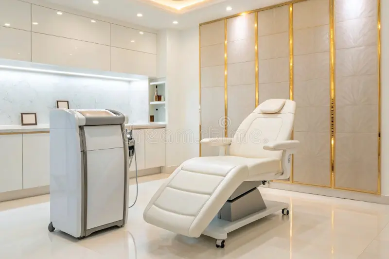 back wall is window with transparant logo also big logo on the left wall and take the high cabinets out