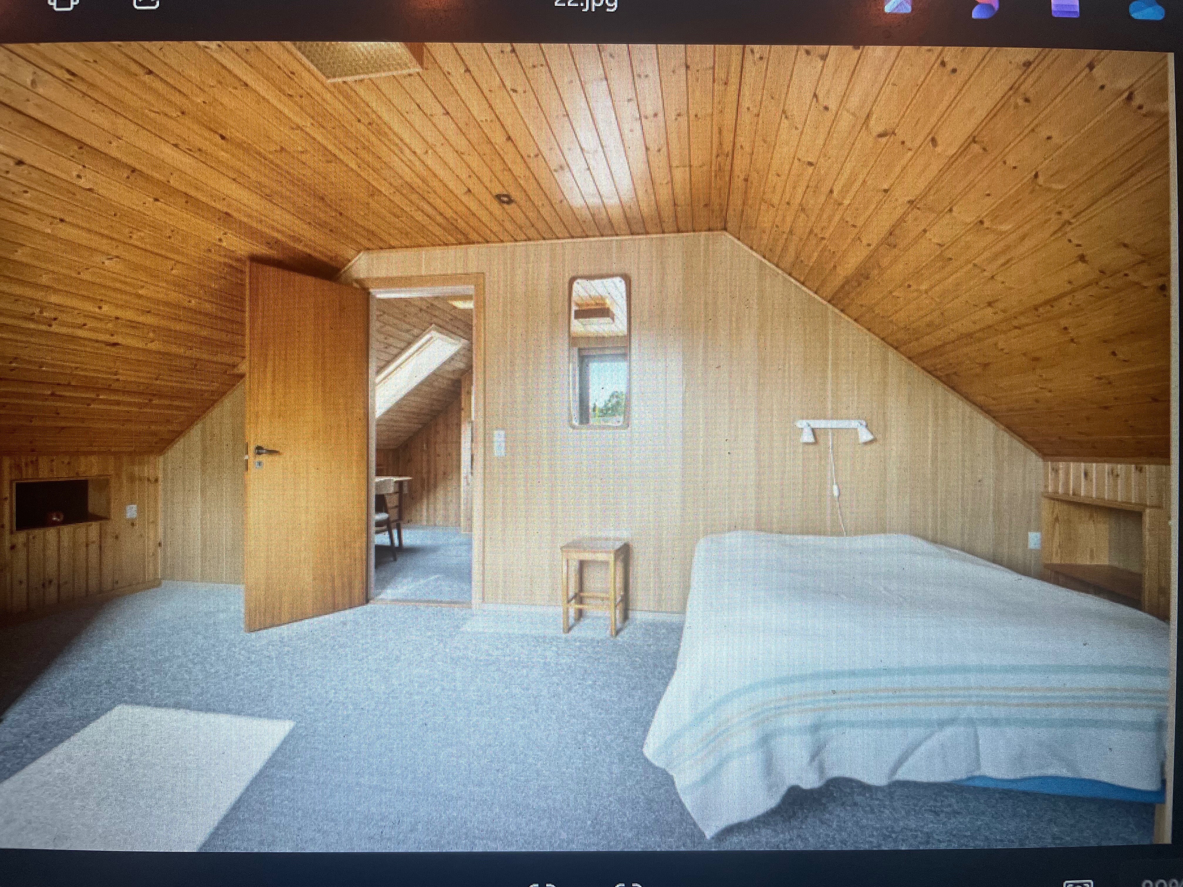 modernist exterior shot remove wood on all walls but keep wood in the ceiling insert a 180cm bed with bedframe and a rug underneath insert bed side tables and wall lamps architecture
