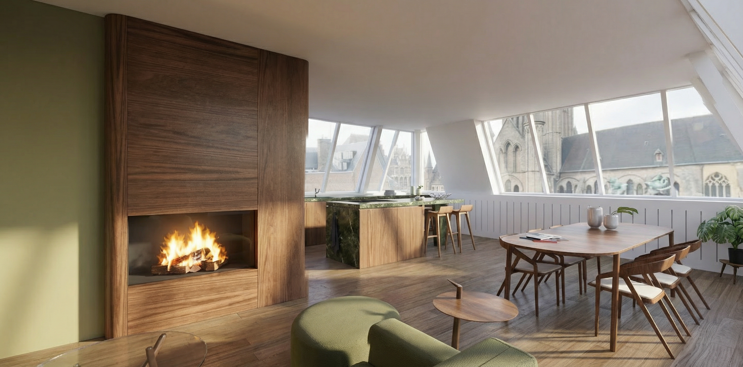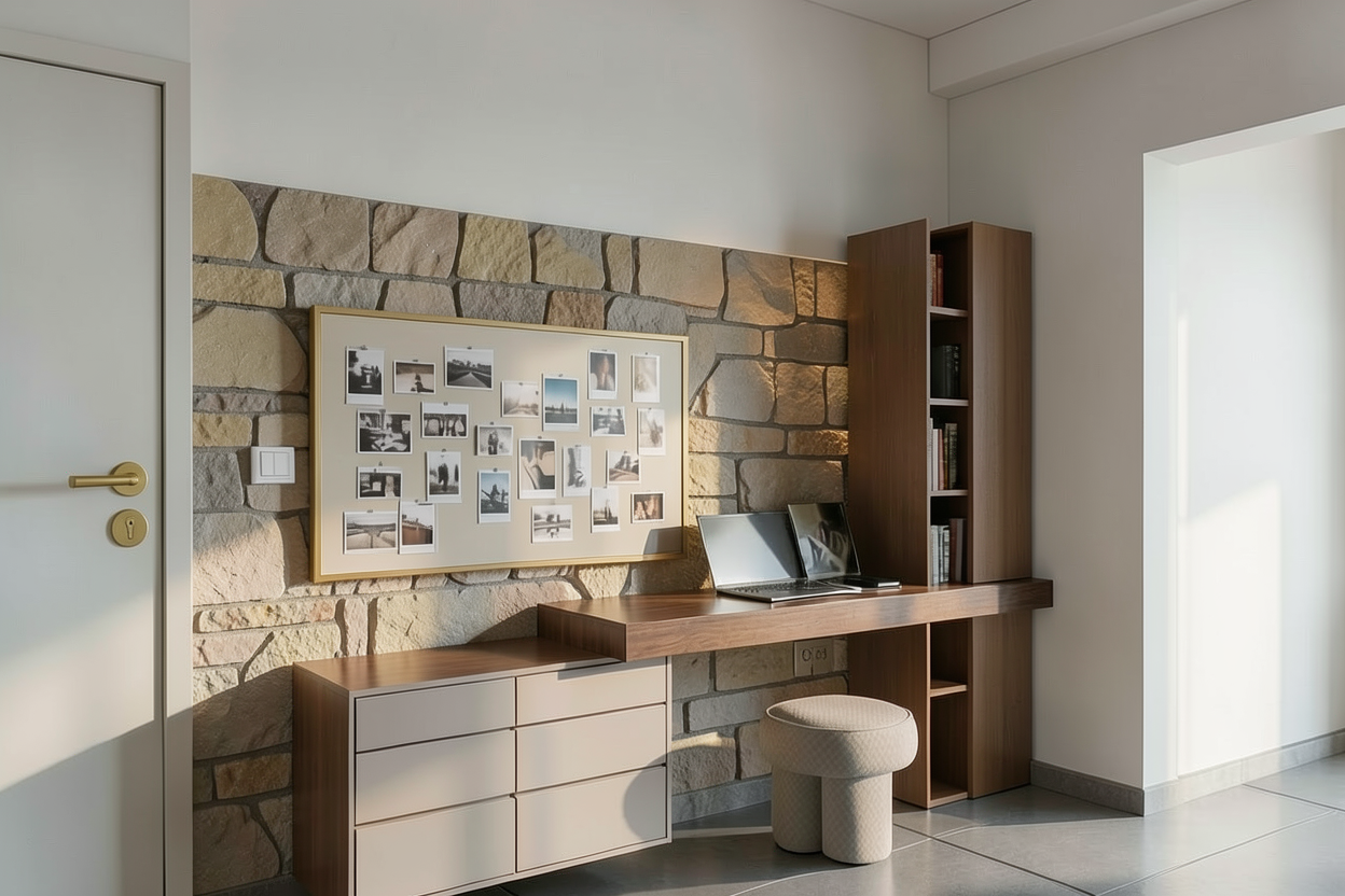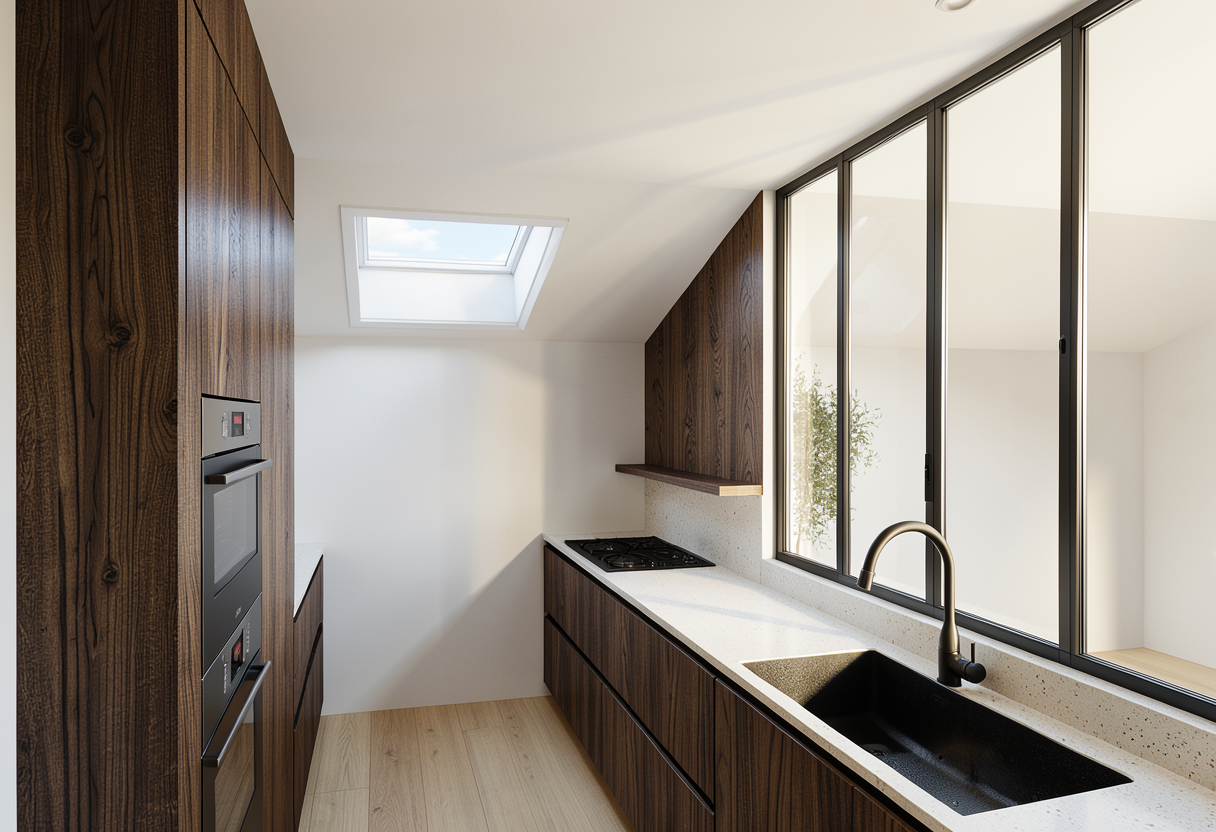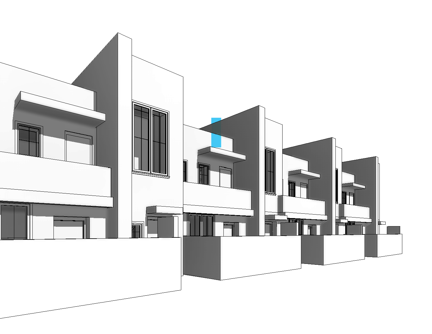 show this as a all brick and concrete row homes modernist show xeriscaping outside