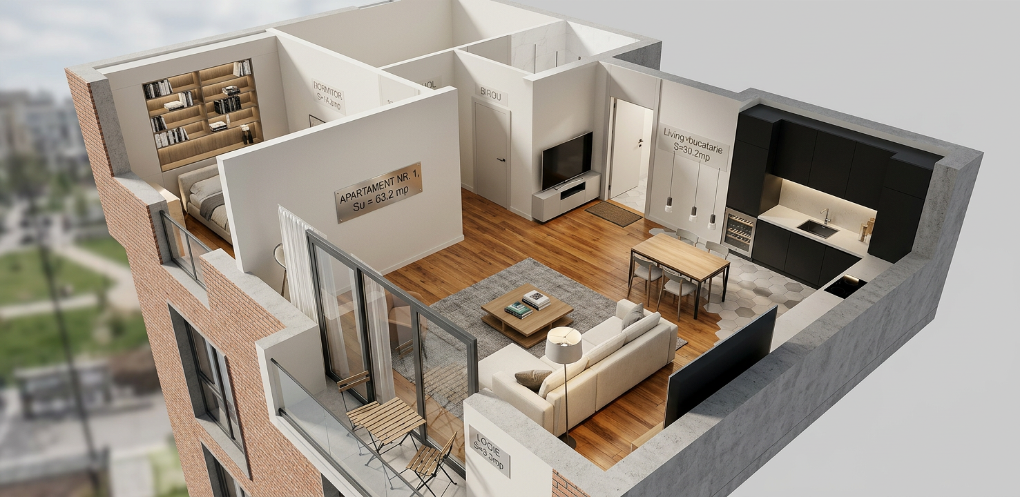 this is a model of a bungalow add few trees in background and neat vegetation to give it context add creamish interior warm lighting low brightness