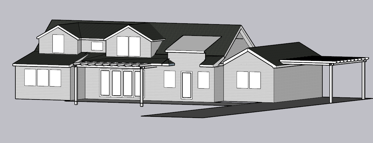 white siding and asphalt shingles on roof
