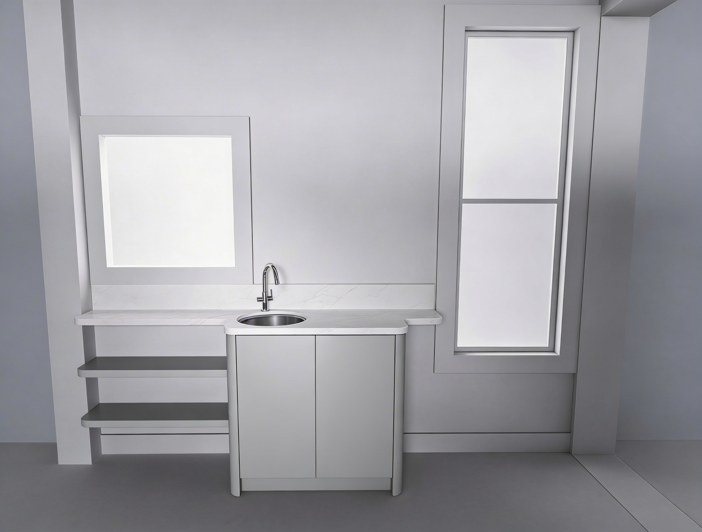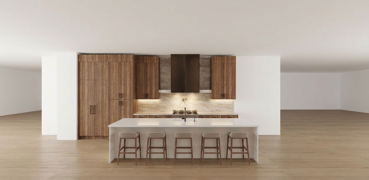 the black squares in the background are dark blue greyish each individual square in the background consists primarily of blue with purple pink and orange tones the shadows are black the entire image is more saturated the vertical led line in the background emit an orange light the light under the desk have a warm glow vibrant colors highly saturated high contrast the pink color of the desk will be retained increase color saturation enhance contrast make the colors more vibrant while maintaining the architectural forms the light on the persons face remains the same as in the original photo do not change or add new structural elements slight dark shadow and depth in the background keep warm atmosphere dark shiny wooden floor