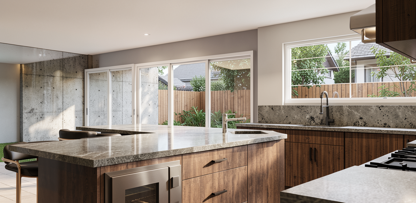 make it a photorealistic image with pre evening scene slightly developed area behind the site