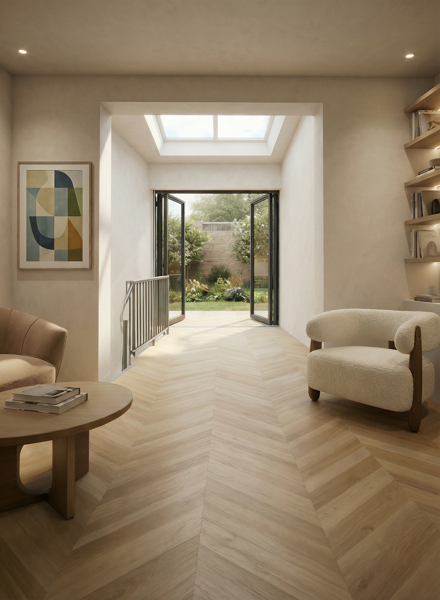 add a black mid century floor light for reading near the armchair on the right handside like the coupe by joe colombo