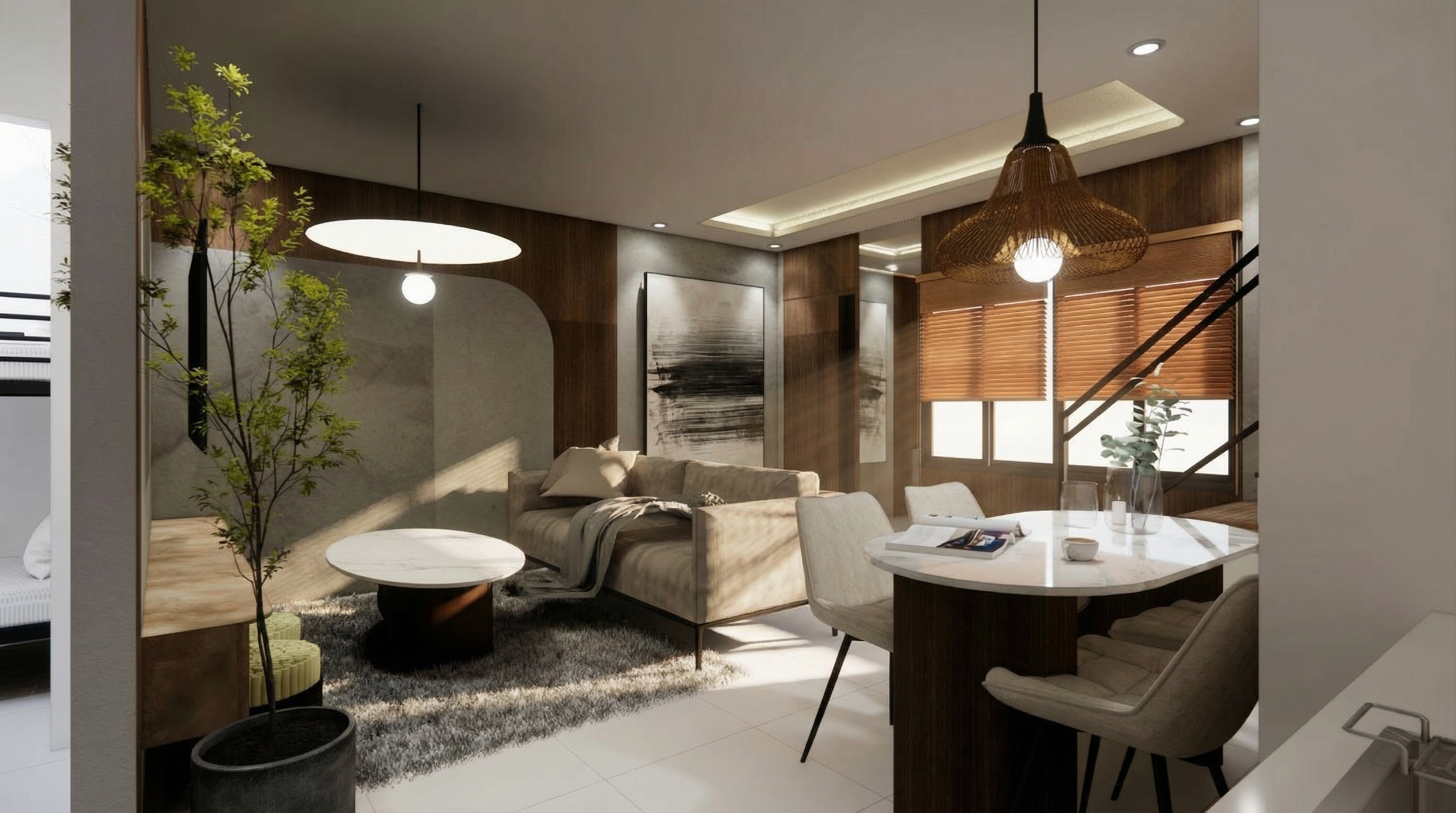 add trees behind the wall outside lower the intensity of the flames add rows of led lighting on the cieling