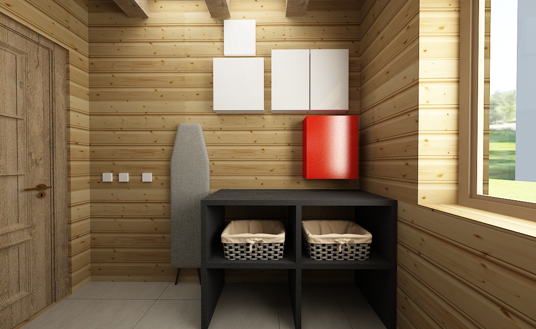 this is technical room add some accesories on the black shelve make photo more realistic better materials better background