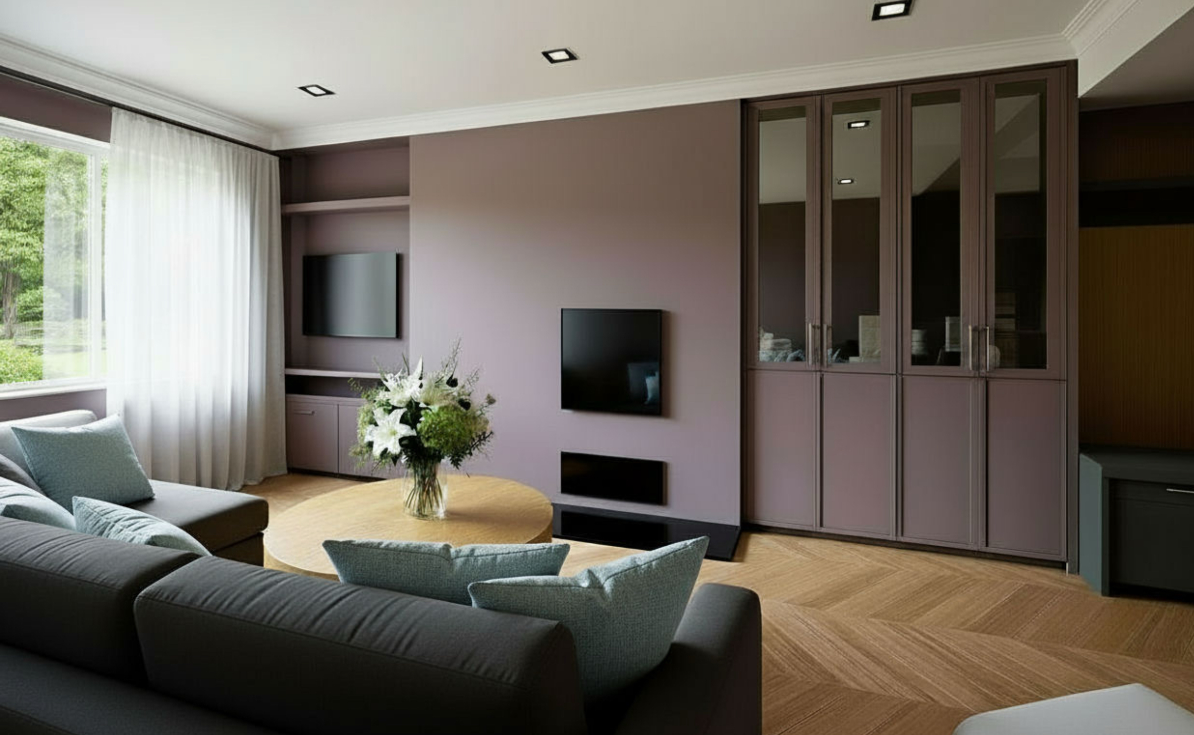 remove the reflections in the glass cabinets add some interior lights to the glass cabinets