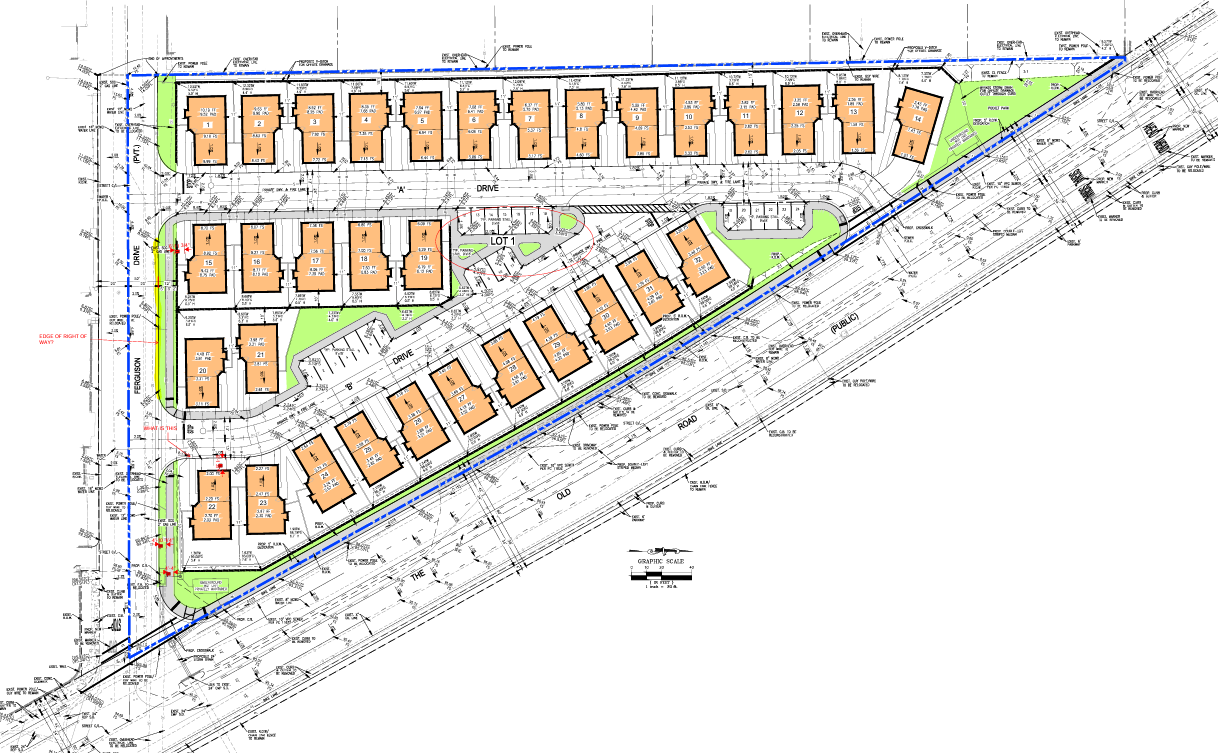 convert this floor plan into a realistic isometric 3d view of a full house show the space from an elevated angle with furniture walls and details visible turn this site plan into a 3d render it s a townhomes condominium where all of the orange shapes are separate buildings each and all of them are equal with sloped roofs garage and front yard add landscape vegetation and stuff to the green areas add the respective streets and sidewalks delete all of the texts lines numbers and graphic elements that do not correspond to the 3d model it s located in california so ambient add context to the surrounded lots and parcels based on that use the same furniture as shows on the plan do not change the orientation of the floorplan