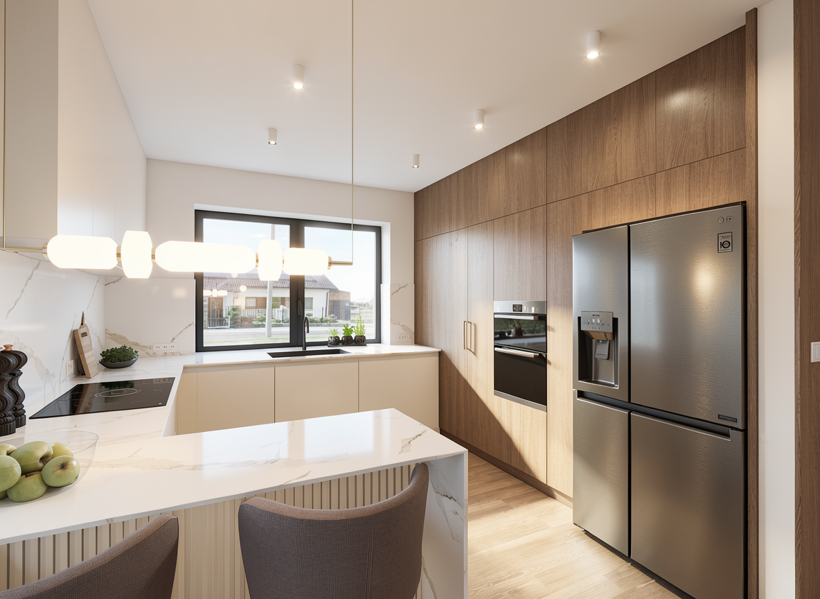 enhance this image to a highly photorealistic standard only by improving lighting quality light balance shadows reflections and overall texture material realism increase the realism and resolution of all existing surfaces and textures while preserving their exact original appearance improve sharpness depth and natural color grading subtly strictly do not change anything else do not alter composition layout camera angle proportions dimensions geometry furniture objects decor colors materials structure styling or placement of any element do not remove add redesign restyle replace or invent anything do not modify shapes or sizes the final result must be the exact same image only with significantly better lighting realism and higher quality textures material definition zr b pod blatem wyspy delikatne wiat o przez d ugo