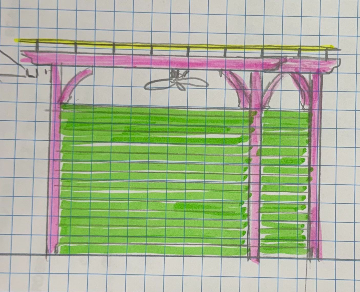 exterior shot pergola 16x16 feet with the front right corner at 45 degrees change colors to walnut brown for all