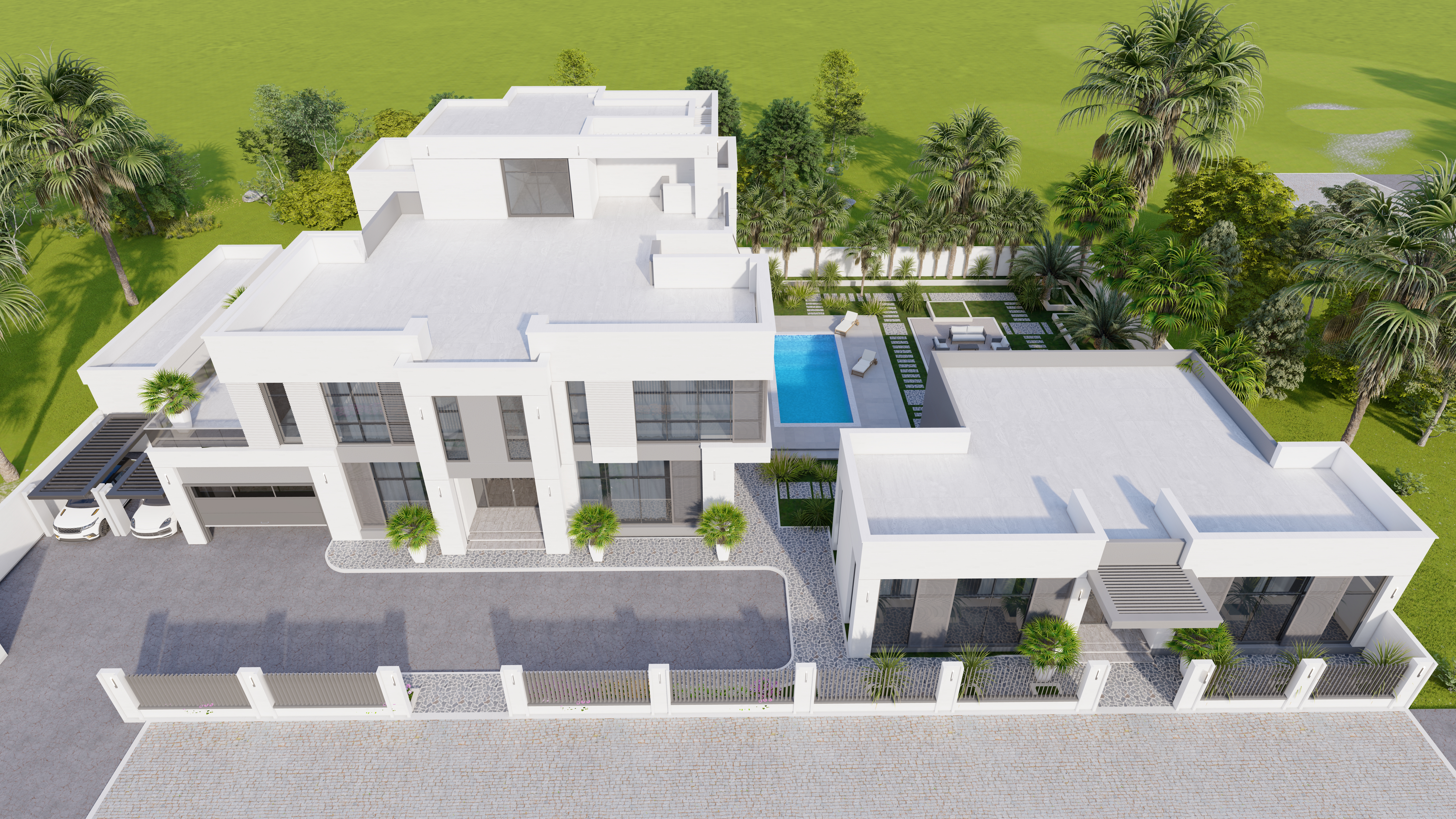 use high quality material and make it as arelistic render enhance material colors lights environment as a realistic render add more trees and villas surrounding